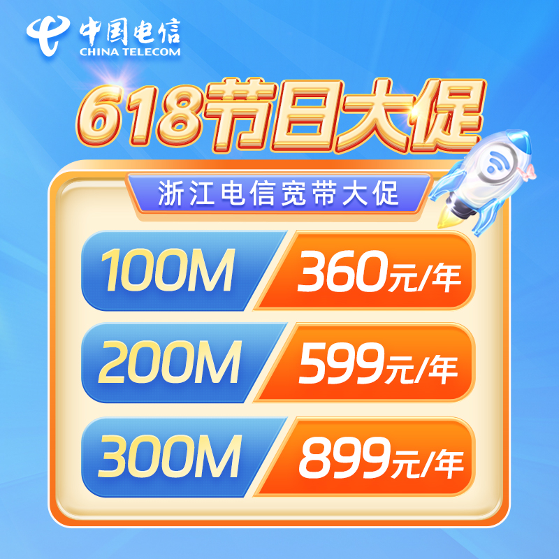 浙江电信宽带办理预约嘉兴杭州金华单宽带200M/300M/100M光纤包年