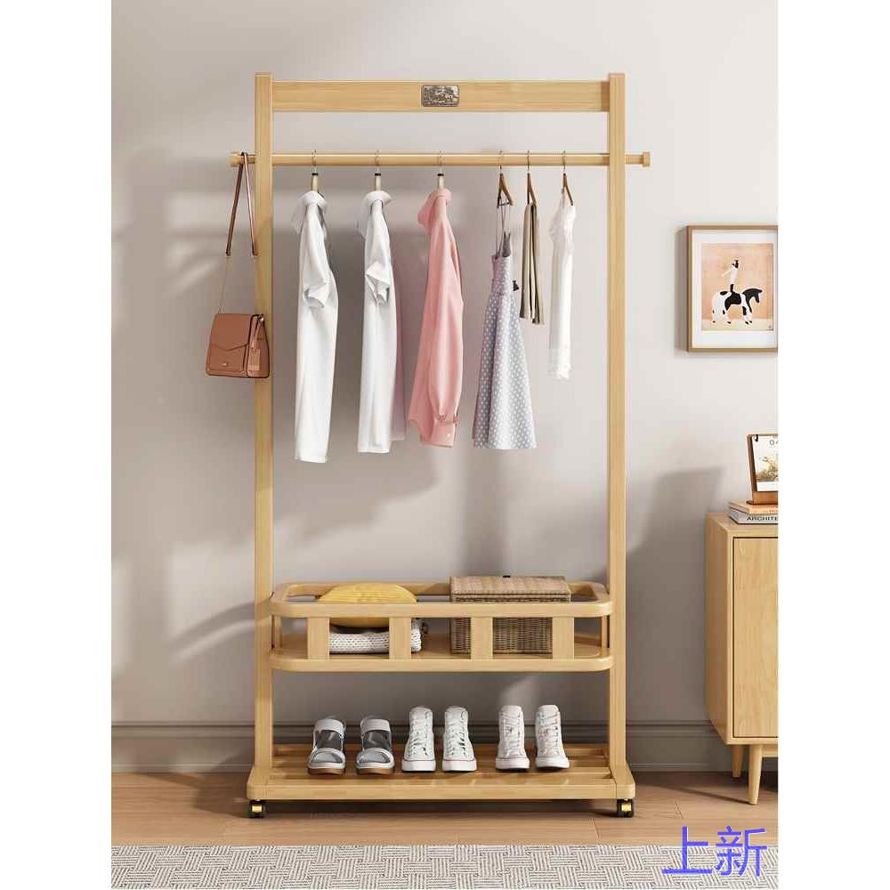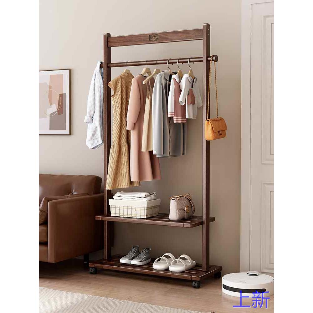 实木衣帽架家用卧室落地挂衣多功移动能带轮创意收纳晾衣置物新款