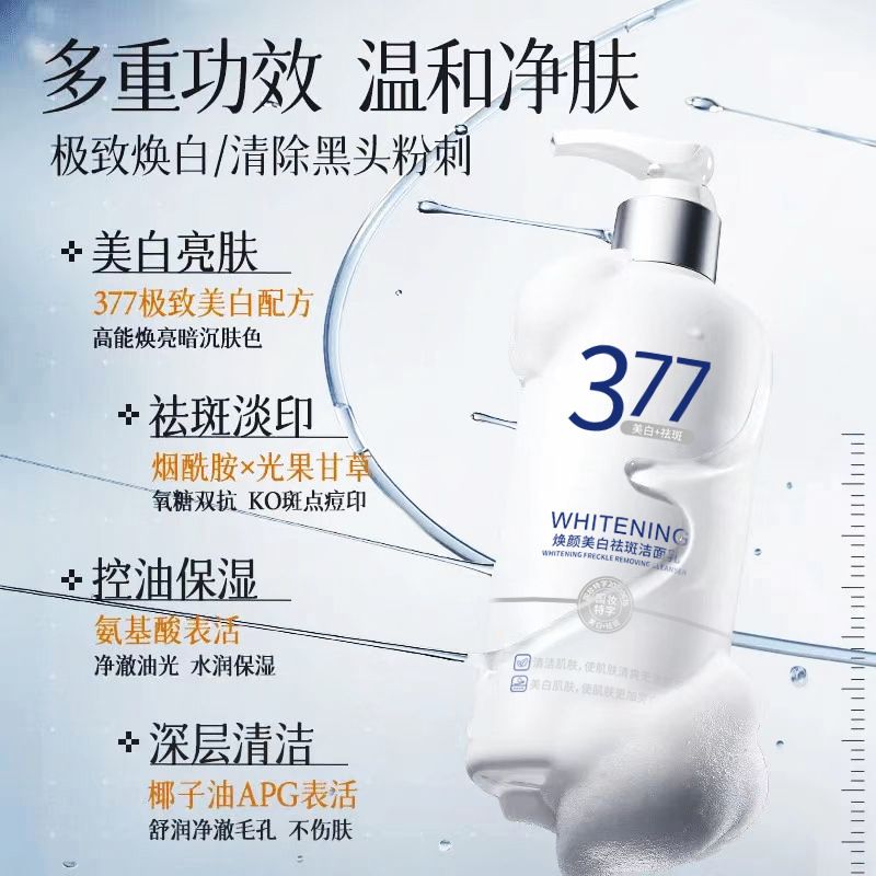 377美白祛斑洗面奶改善暗沉提亮肤色深层清洁控油收缩毛孔洁面乳