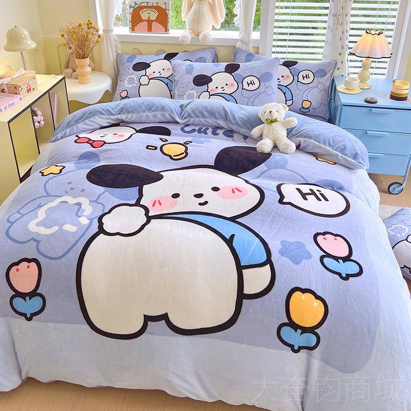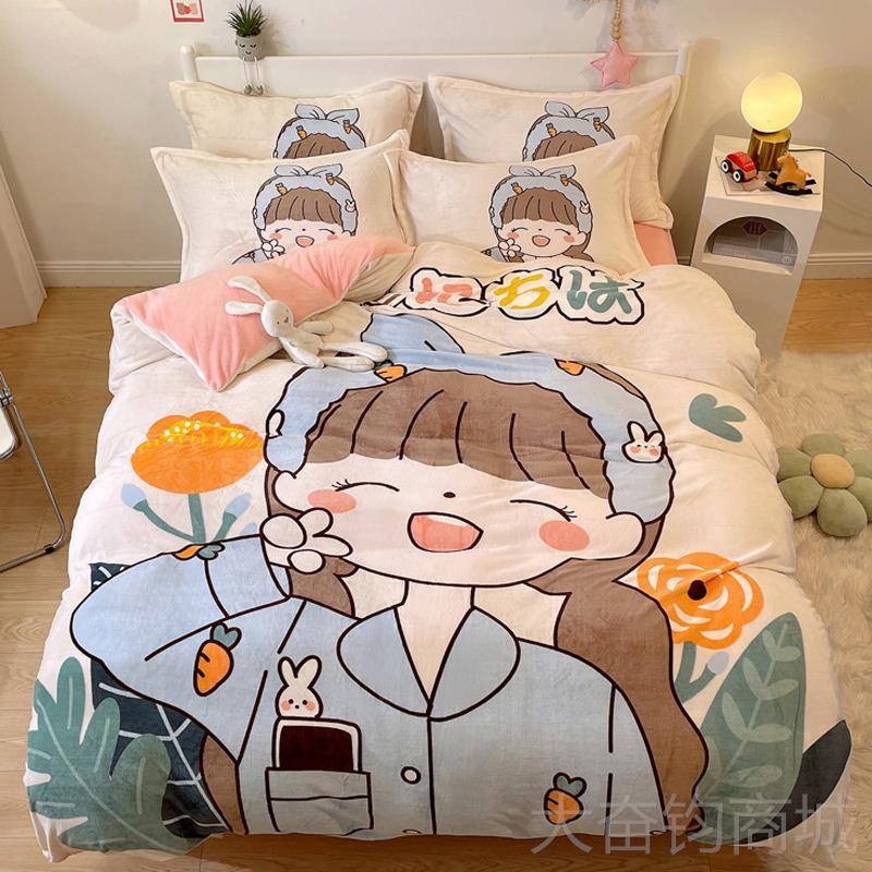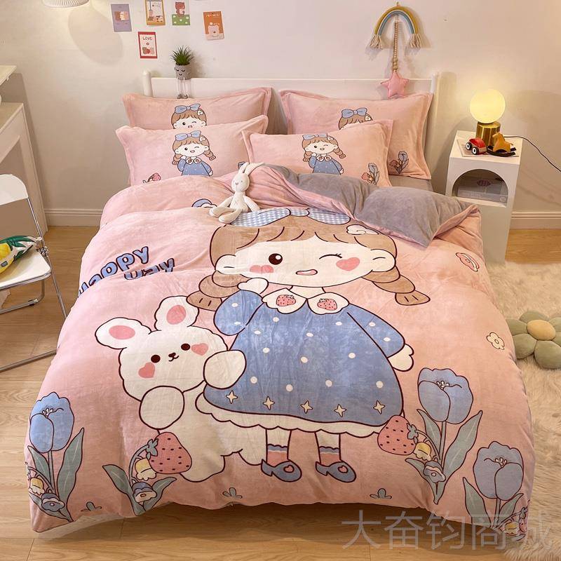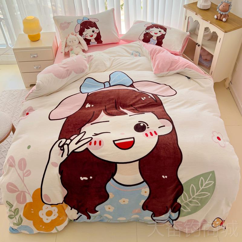 正品秋冬可爱卡通奶绒牛四件珊瑚童绒被套双面加绒保暖儿套床单三