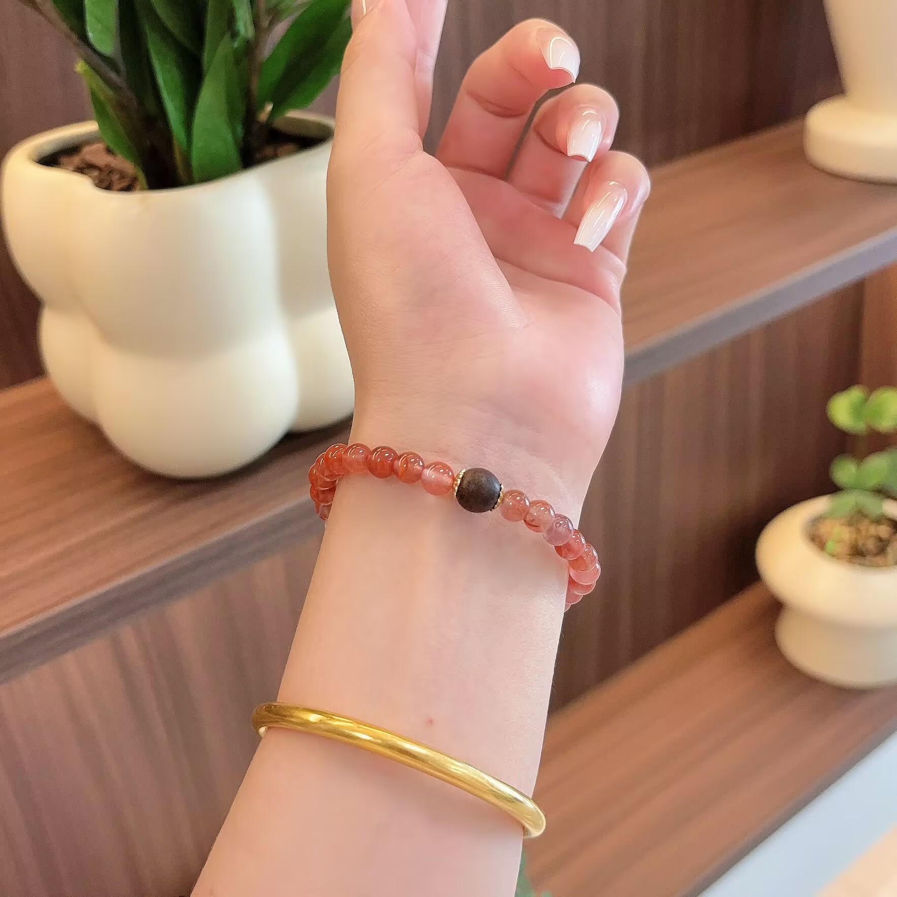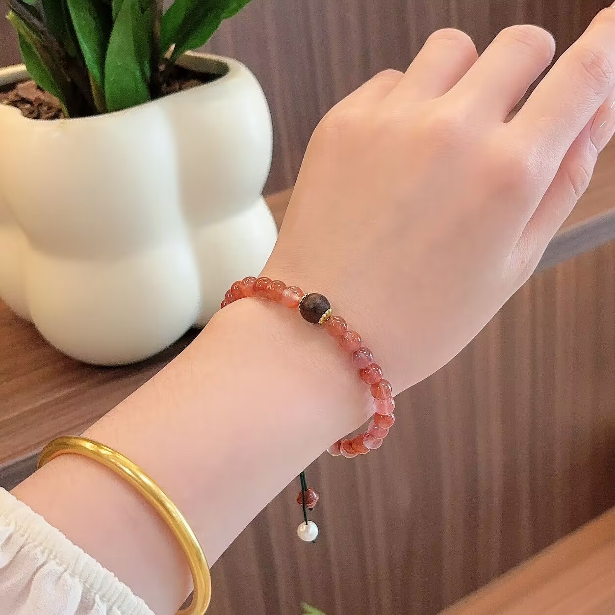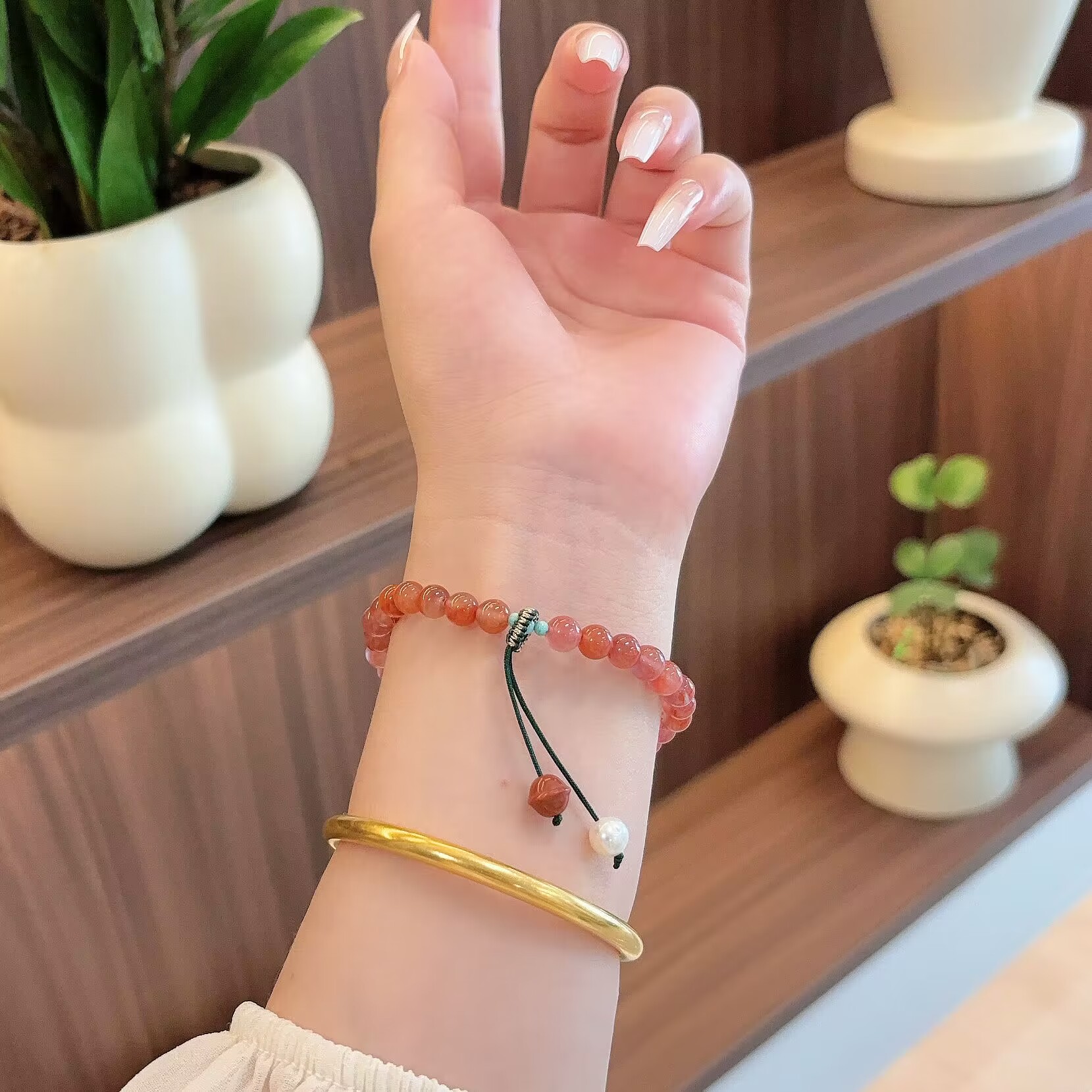 天然鸿运当头红玛瑙手串女串珠弹力手链小众DIY手作流苏单圈手串