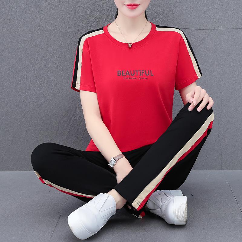 夏季薄款运动套装女2025新款中年妈妈时尚夏装纯棉短袖休闲两件套