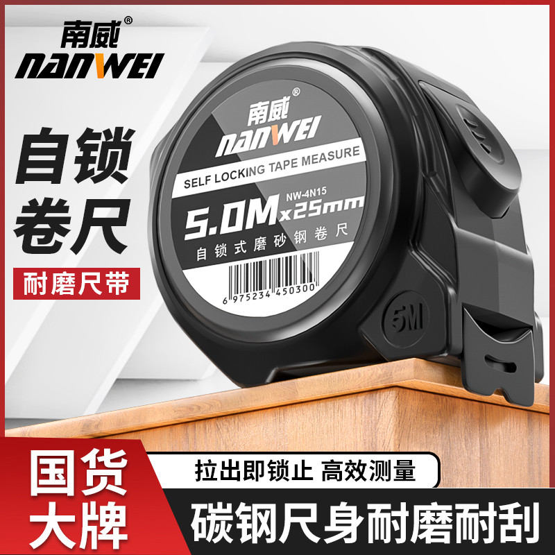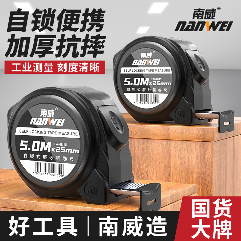 南威自锁卷尺5米钢卷尺加厚加硬圈尺盒尺米尺5高精度尺子卷尺家用