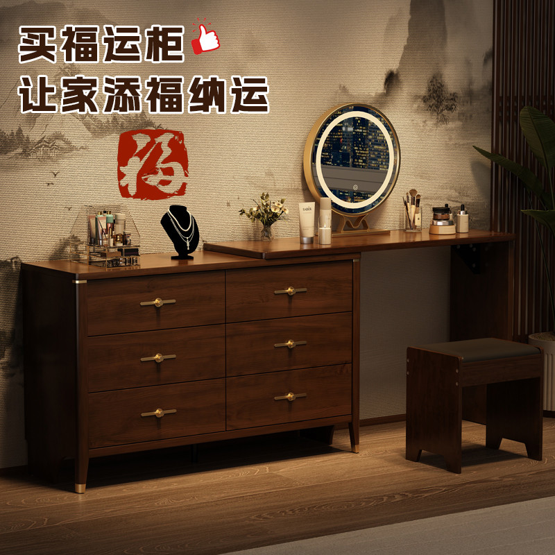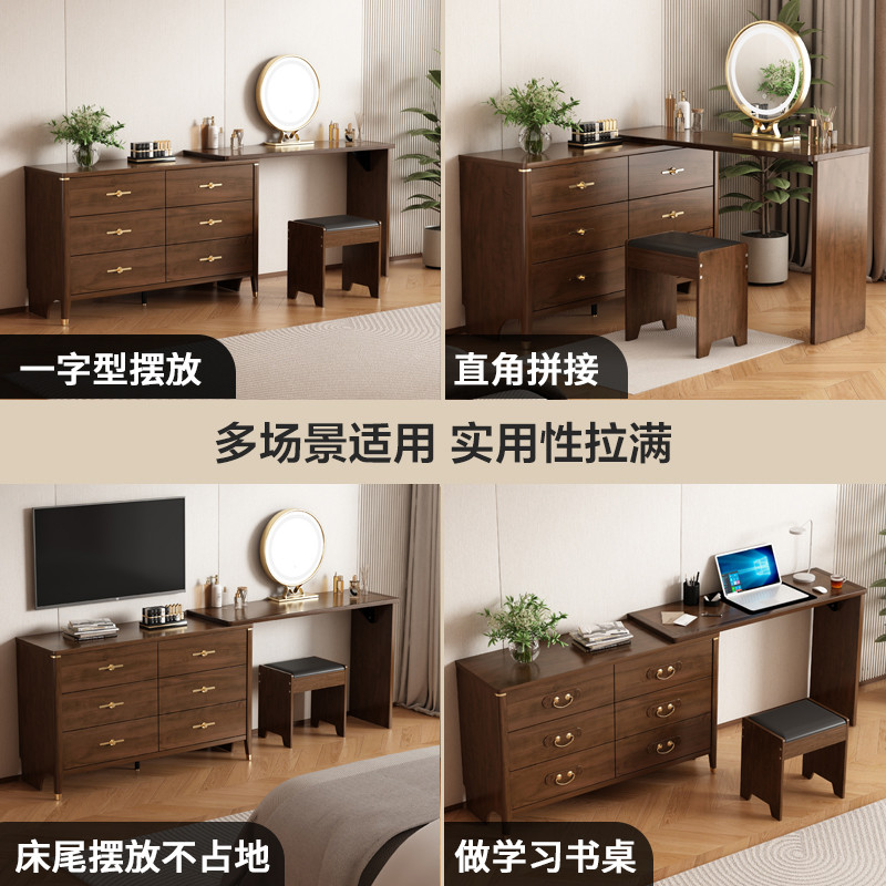 新中式梳妆台斗柜一体卧室收纳储物现代简约实木框化妆台转角书桌