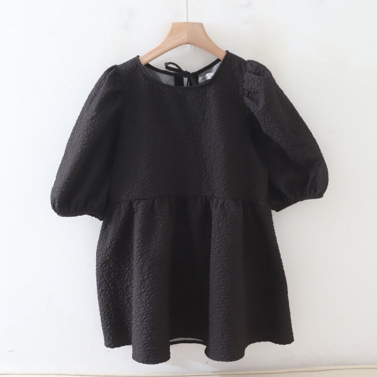 P06009日单春夏新款客供料系带圆领套头微宽松显瘦女气质中长衬衫