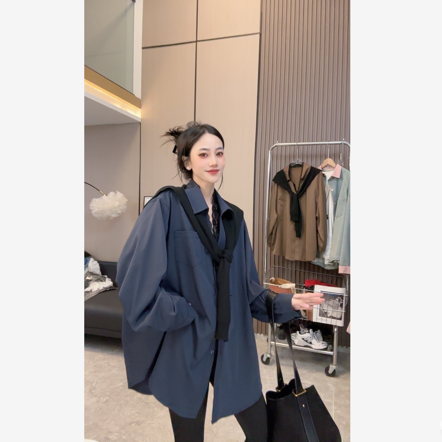 【蕾丝领口】春上新~简约蕾丝拼接宽松中长款长袖百搭衬衫