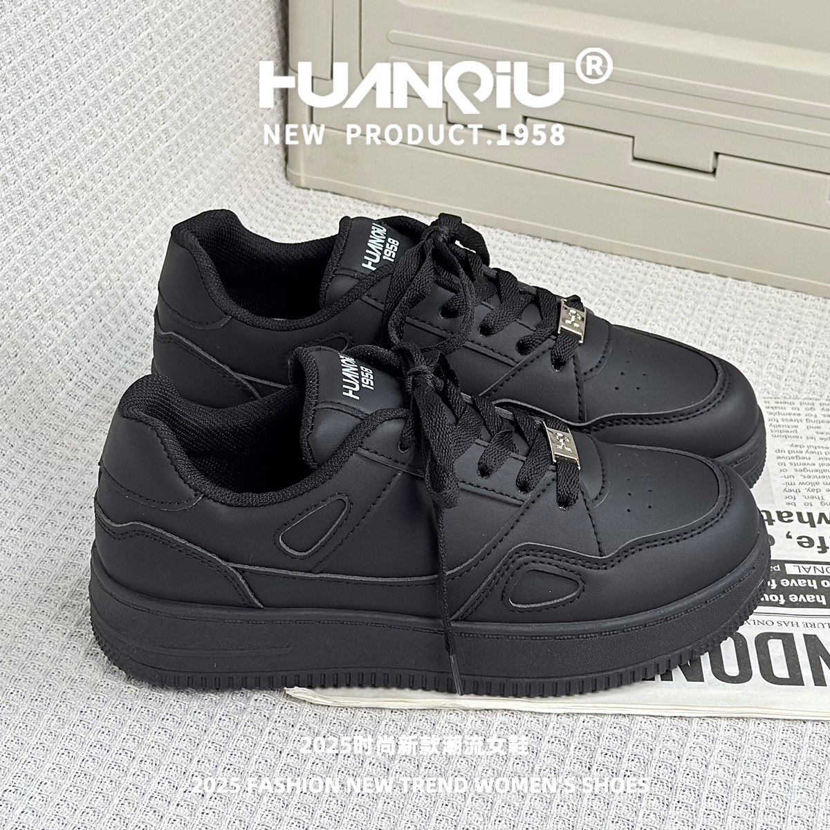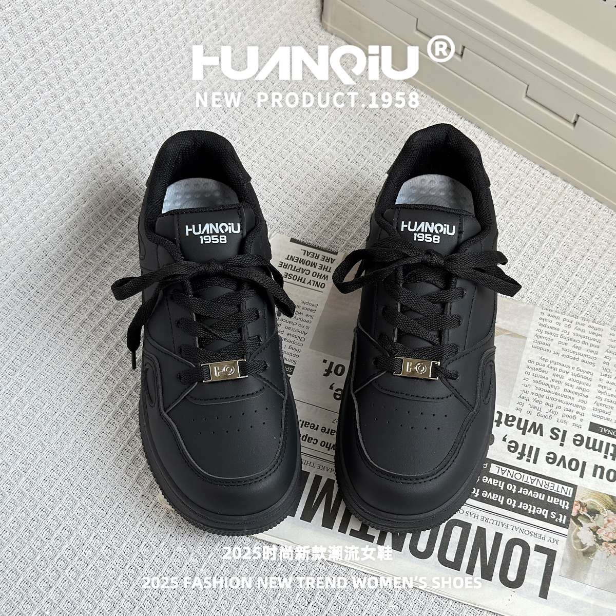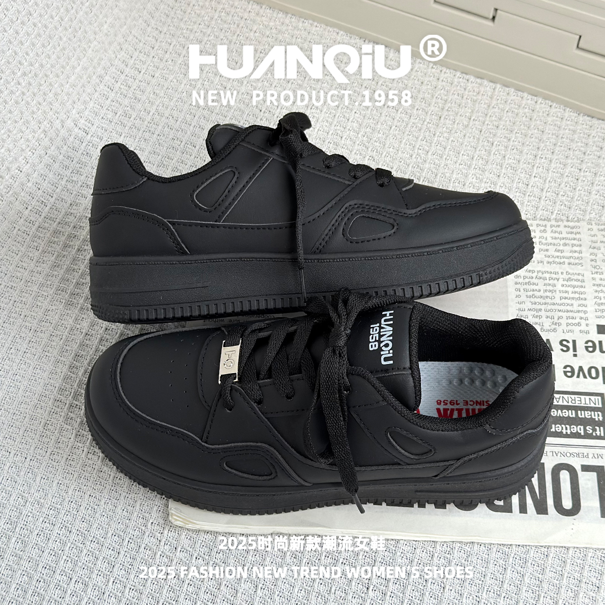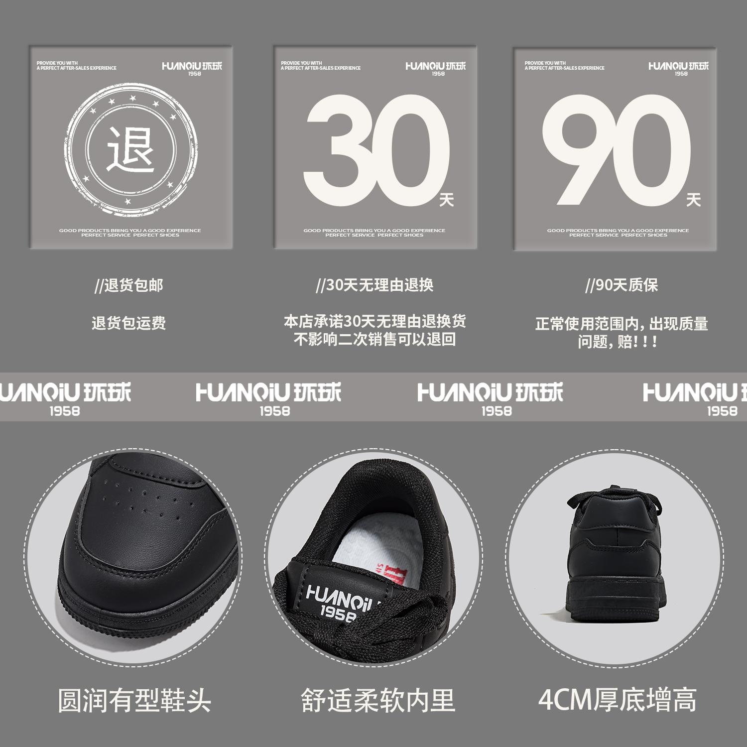 环球女鞋春秋新款爆款小黑鞋2025校园百搭休闲运动板鞋厚底增高鞋