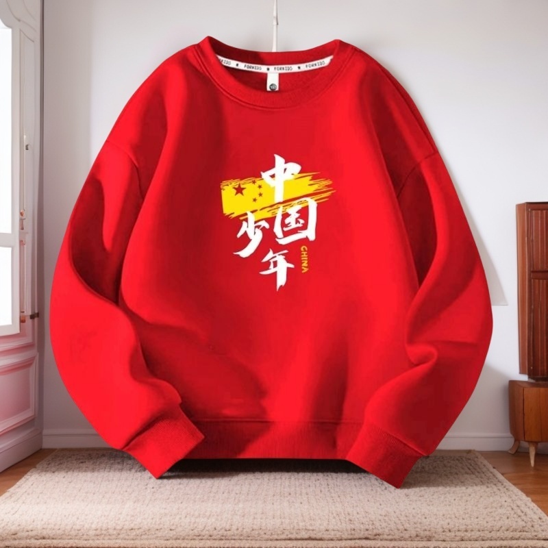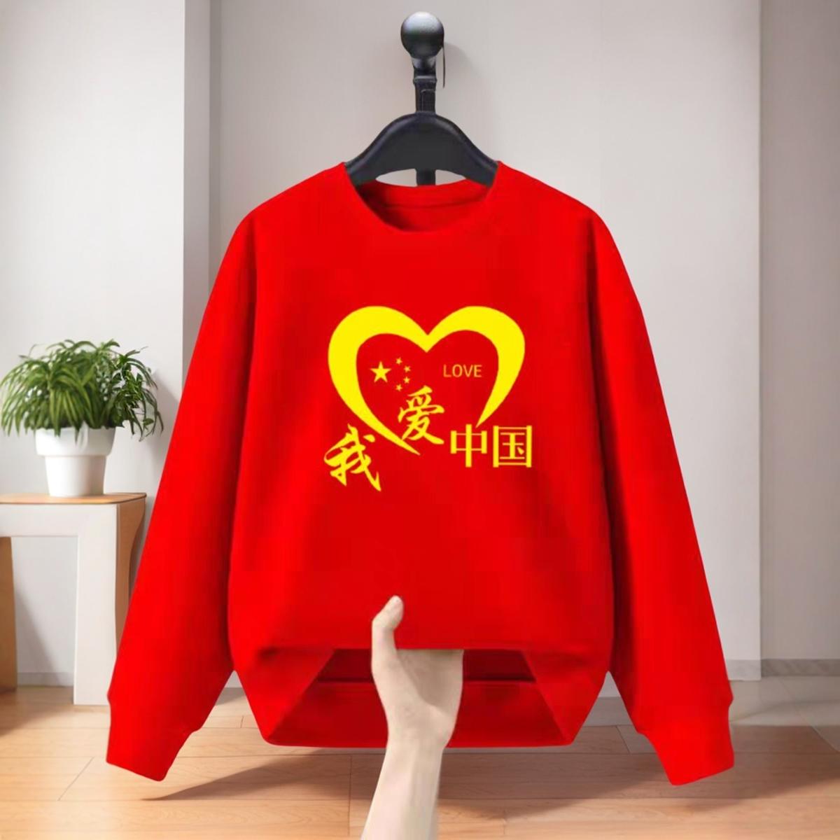 红色中国风女士纯棉卫衣2024春秋装加绒爱国庆休闲宽松男女演出服