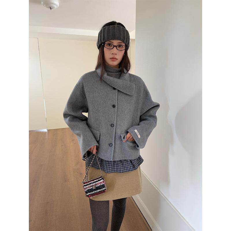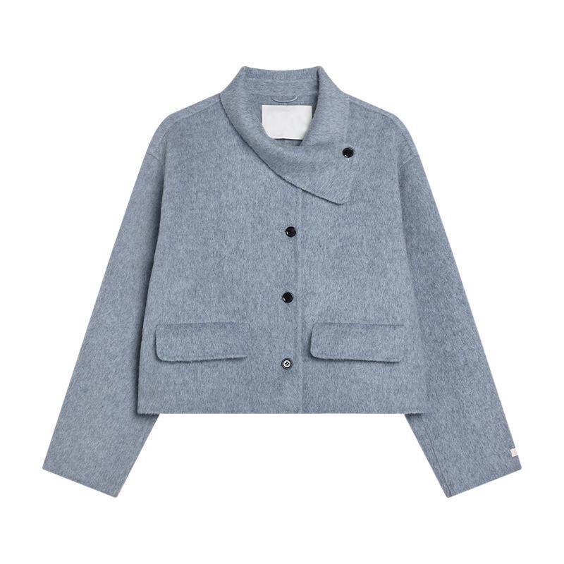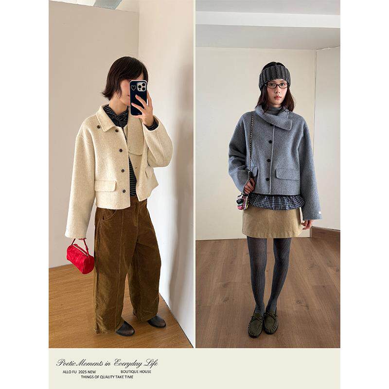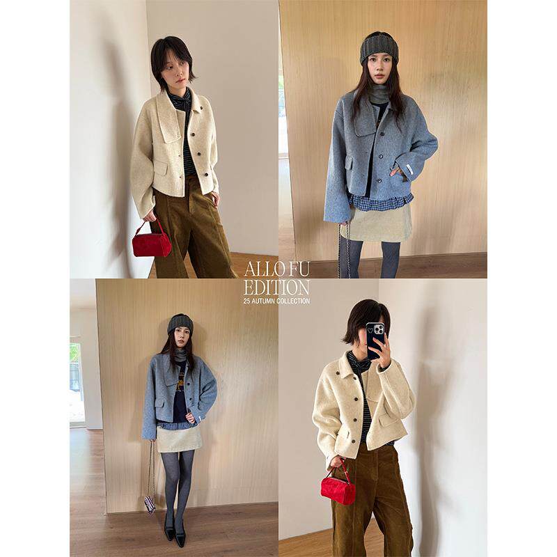 衣夫 羊毛双面呢大衣女2025冬季新款短款小个子设计领毛呢外套883