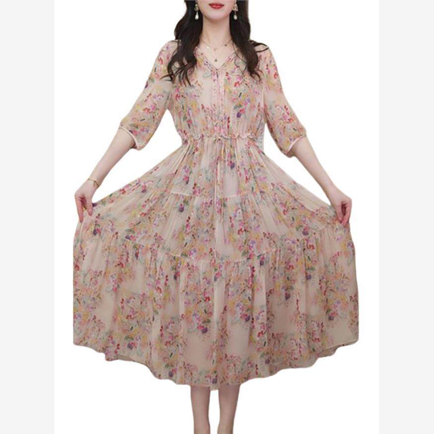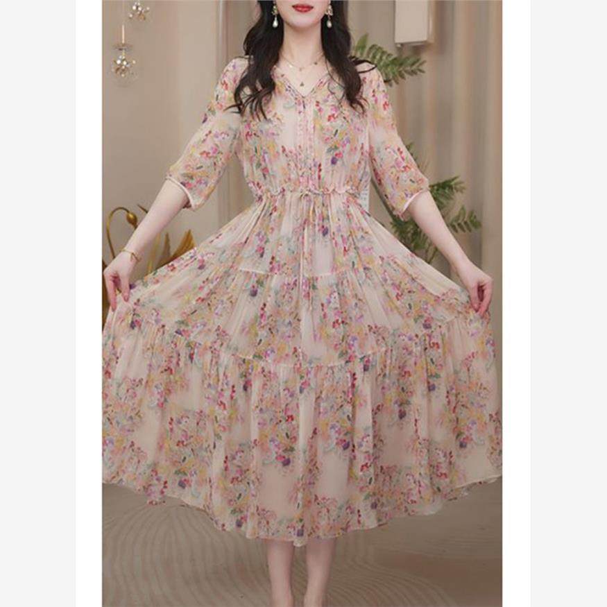 今年流行的漂亮裙子2024年夏季新款女装碎花重磅桑蚕丝真丝连衣裙
