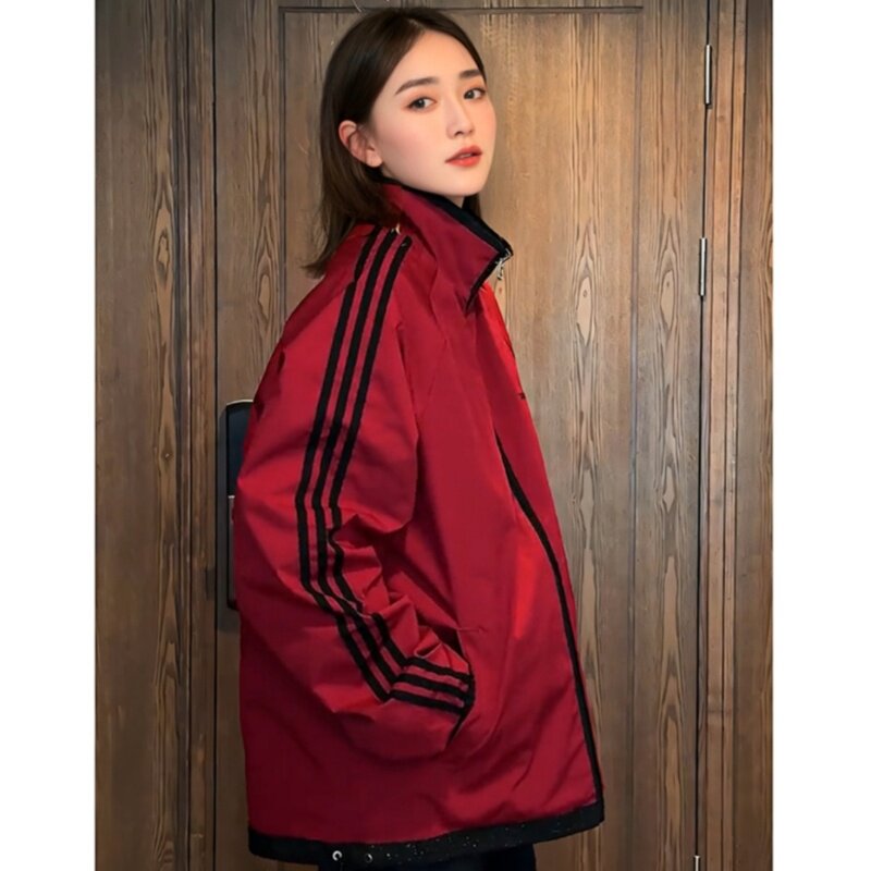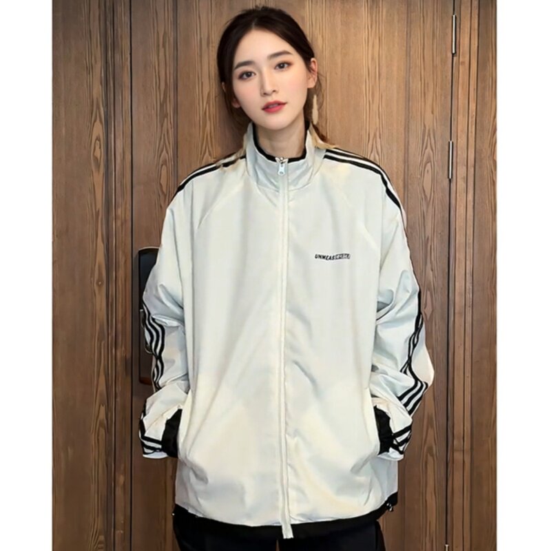 满天星两面穿情侣夹克男女同款春秋季时尚百搭防风条纹冲锋衣外套