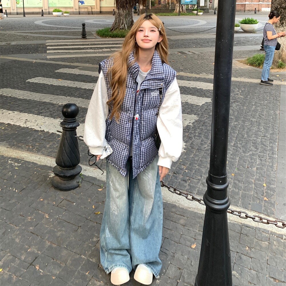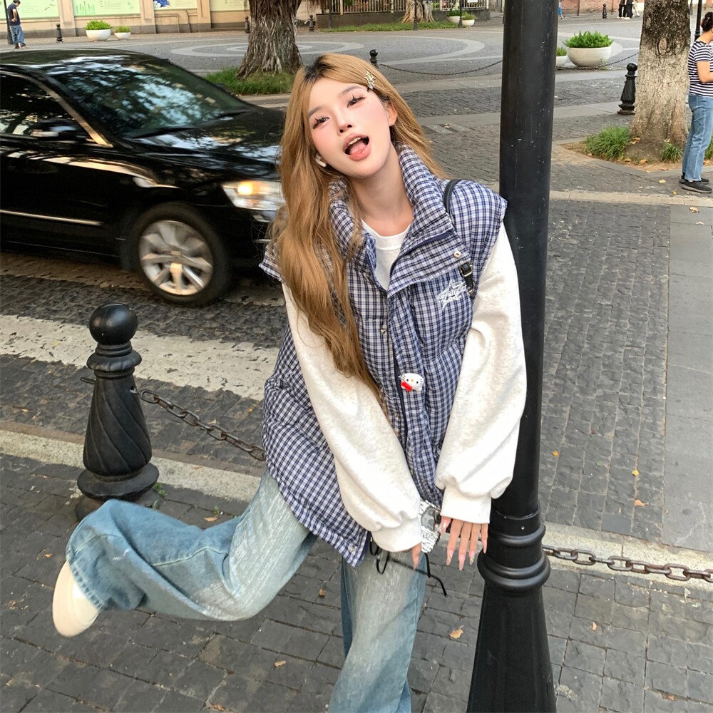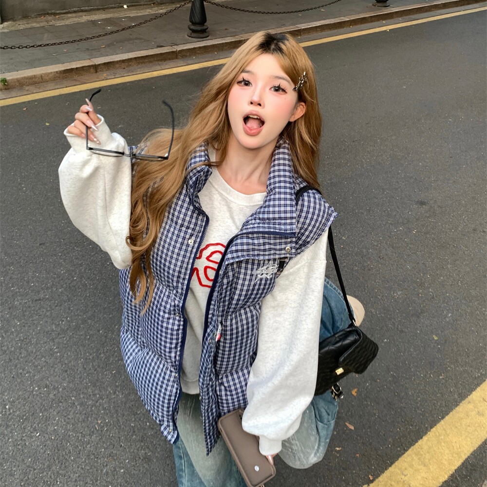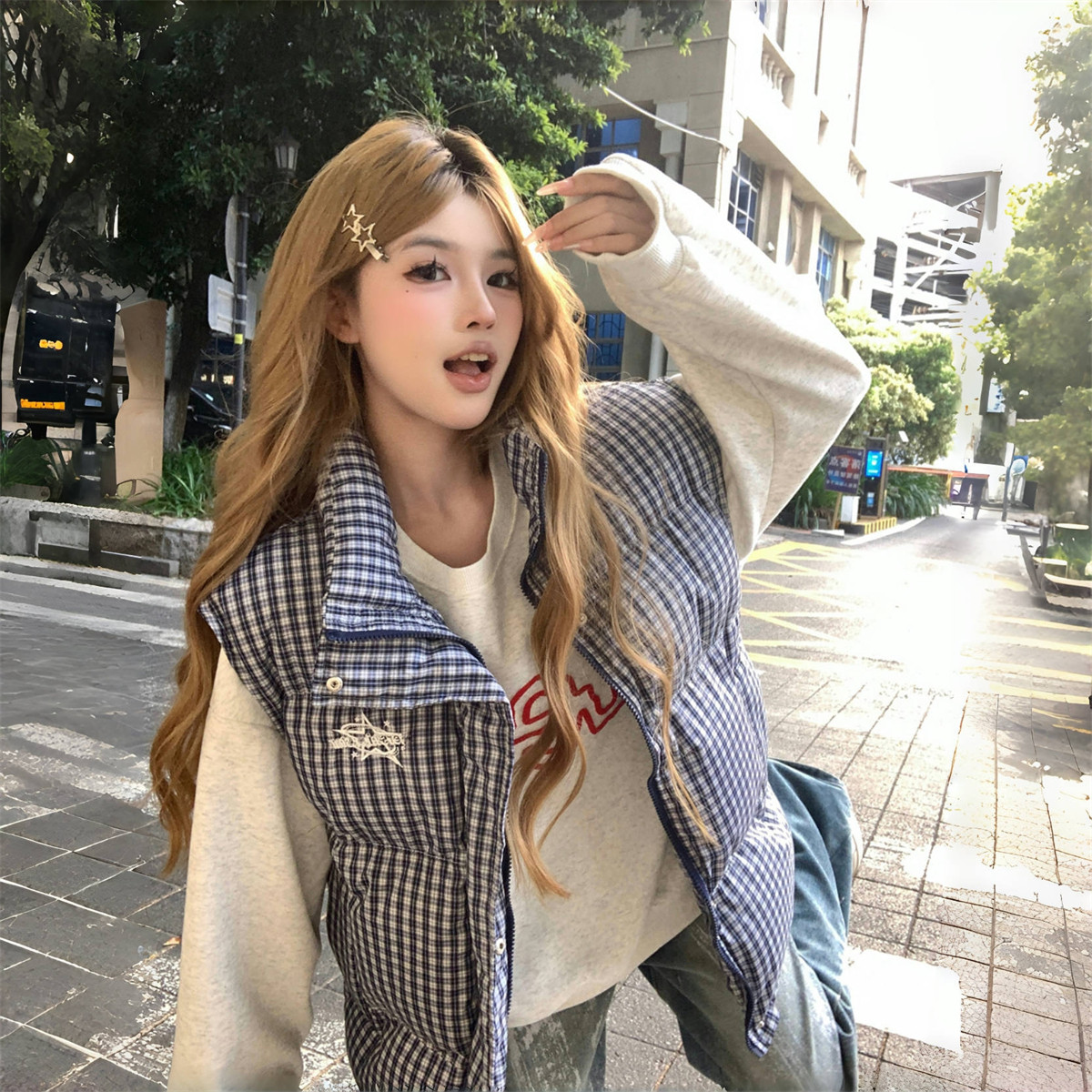 超好看 胖mm大码复古格子棉服马甲女秋冬学生叠穿时尚背心外套602