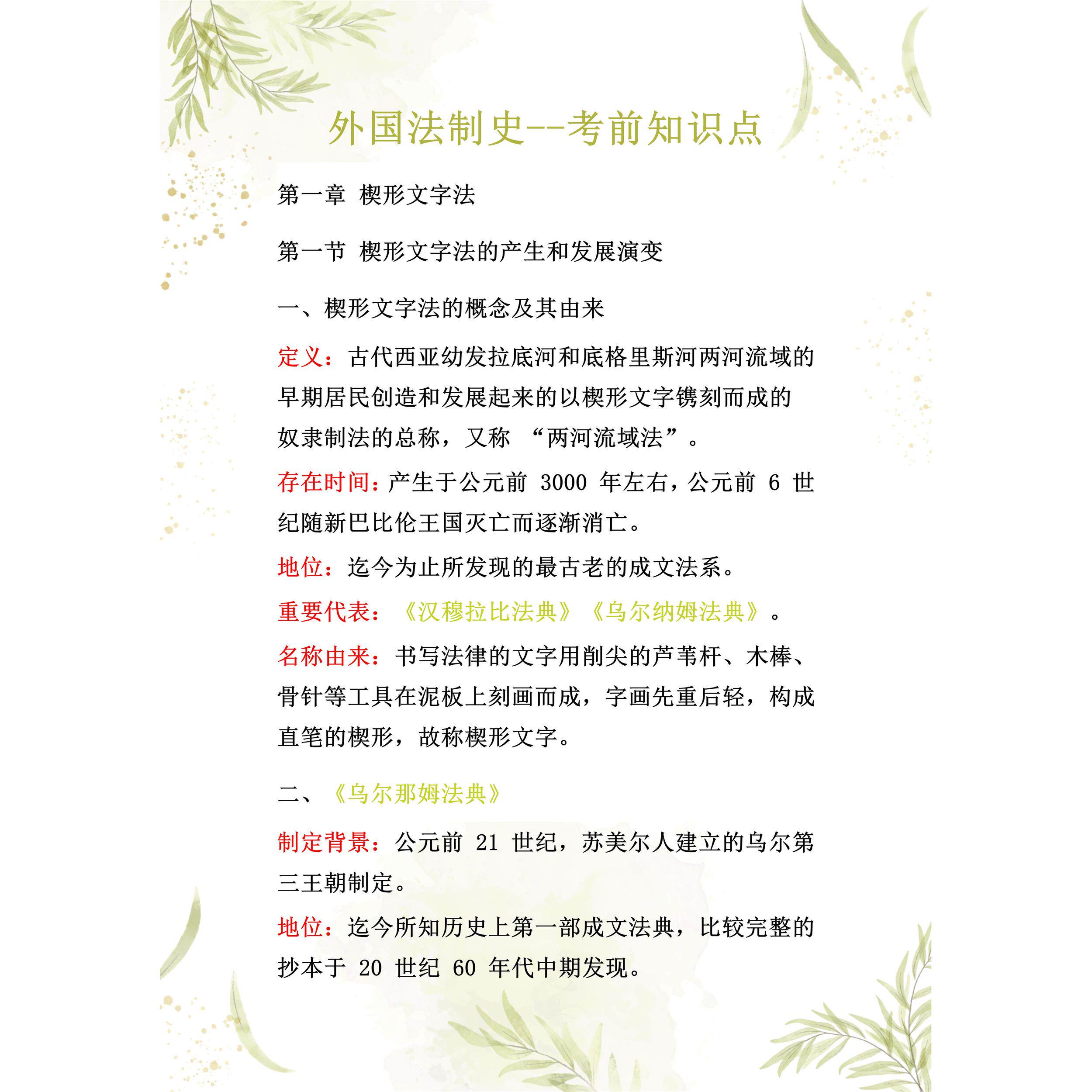 考点重点00263外国法制史考纲讲解自考笔记 资料 自考复习过关思维导图 精讲视频网课 考前押题资料