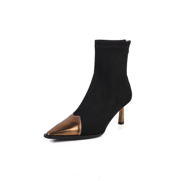 细高跟弹力绒瘦瘦靴2023年设计感金属感尖头靴子女bai搭显瘦气质