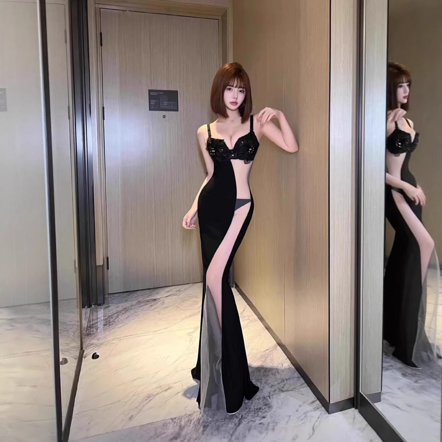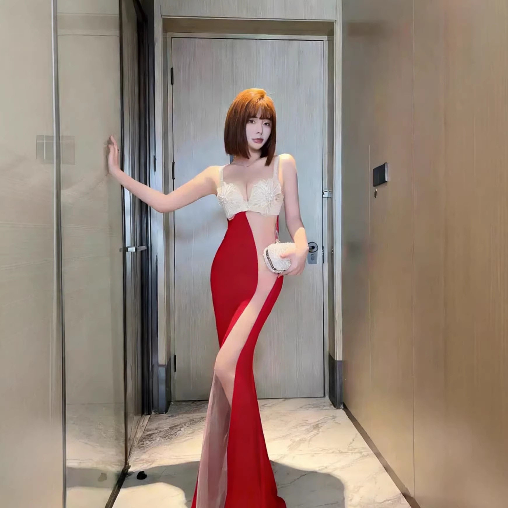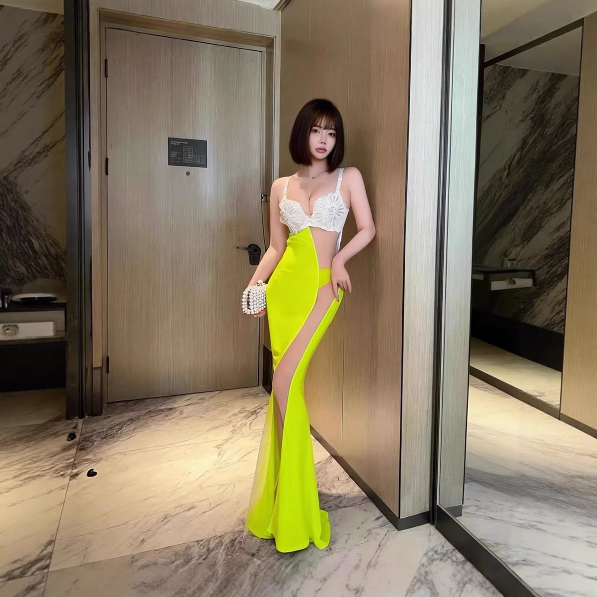 夜场性感女装自带加厚聚拢内衣网纱拼接鱼尾长裙spa佳丽走秀礼服