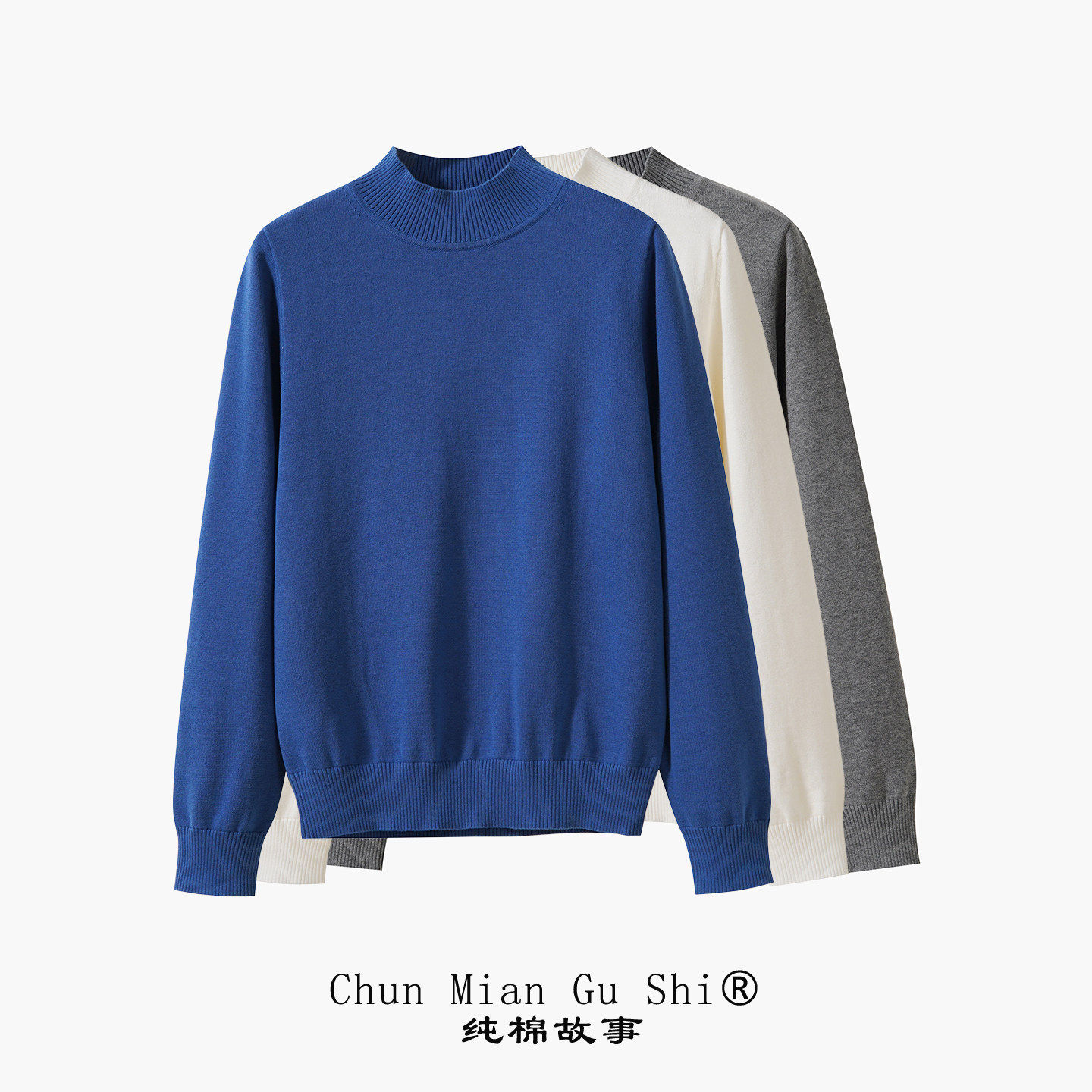 48S精梳细棉 100%全棉 半高领毛衣女薄春秋套头针织打底衫 不起球