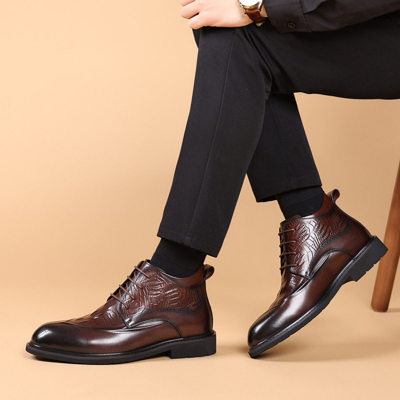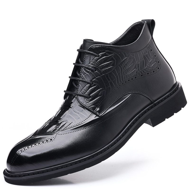 高端品质男士2025冬季新款棉鞋加绒保暖皮鞋英伦真皮商务正装男鞋