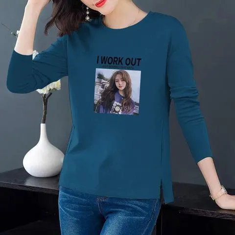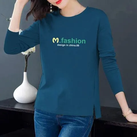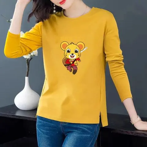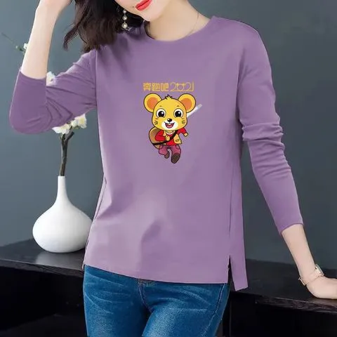 长袖打底衫秋装纯棉宽松2024女士t恤上衣百搭外穿女100%时尚韩版