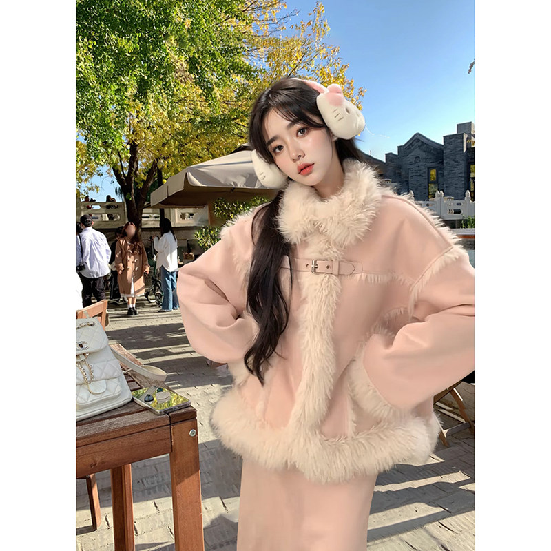 冬装搭配一整套女2025新款高级小香风外套新年毛绒绒气质两件套装