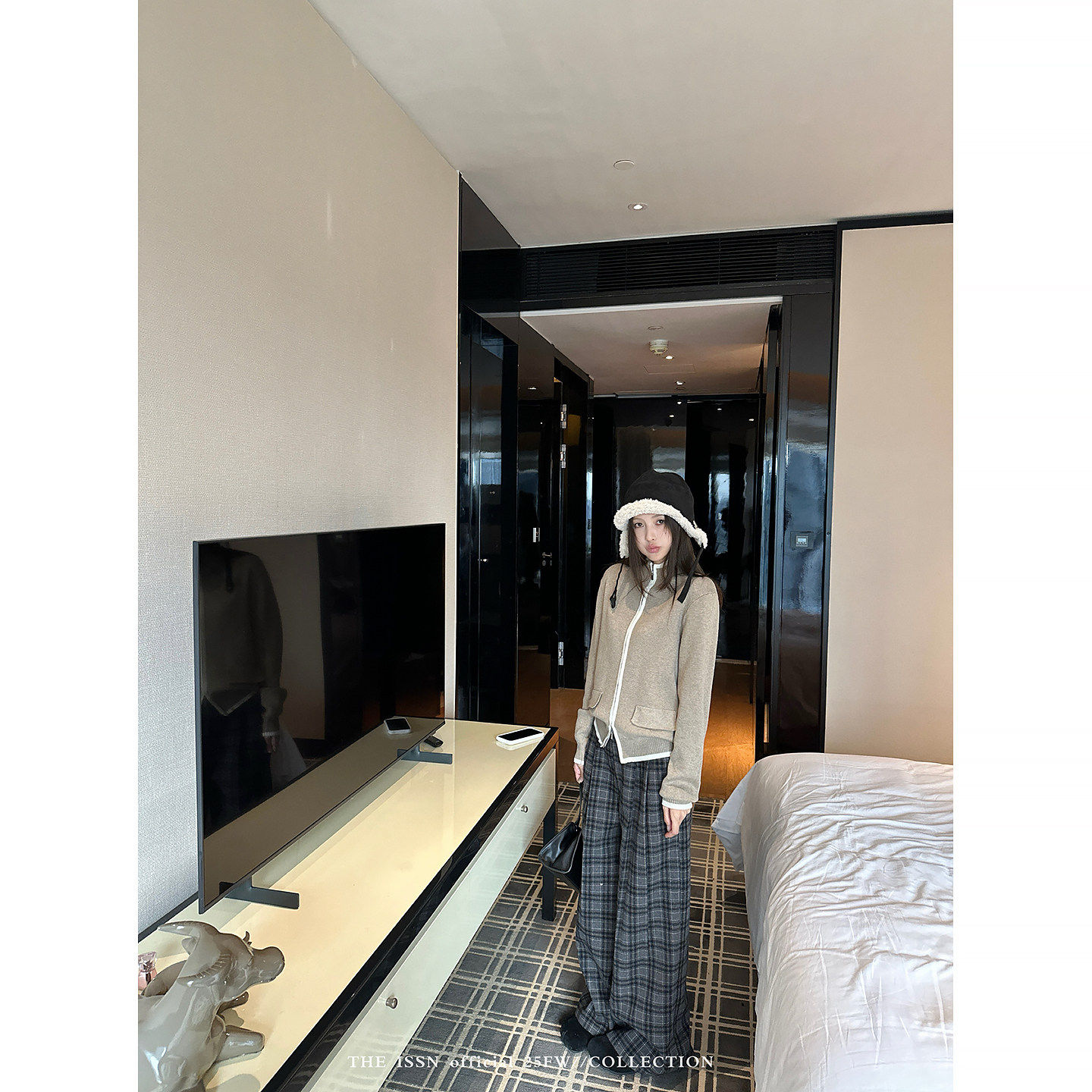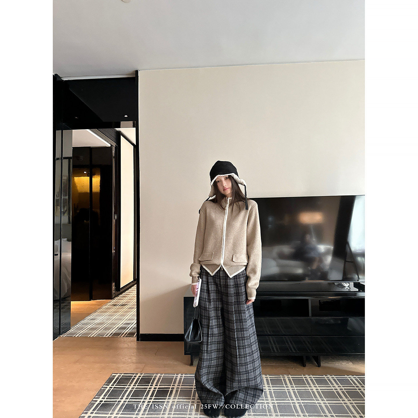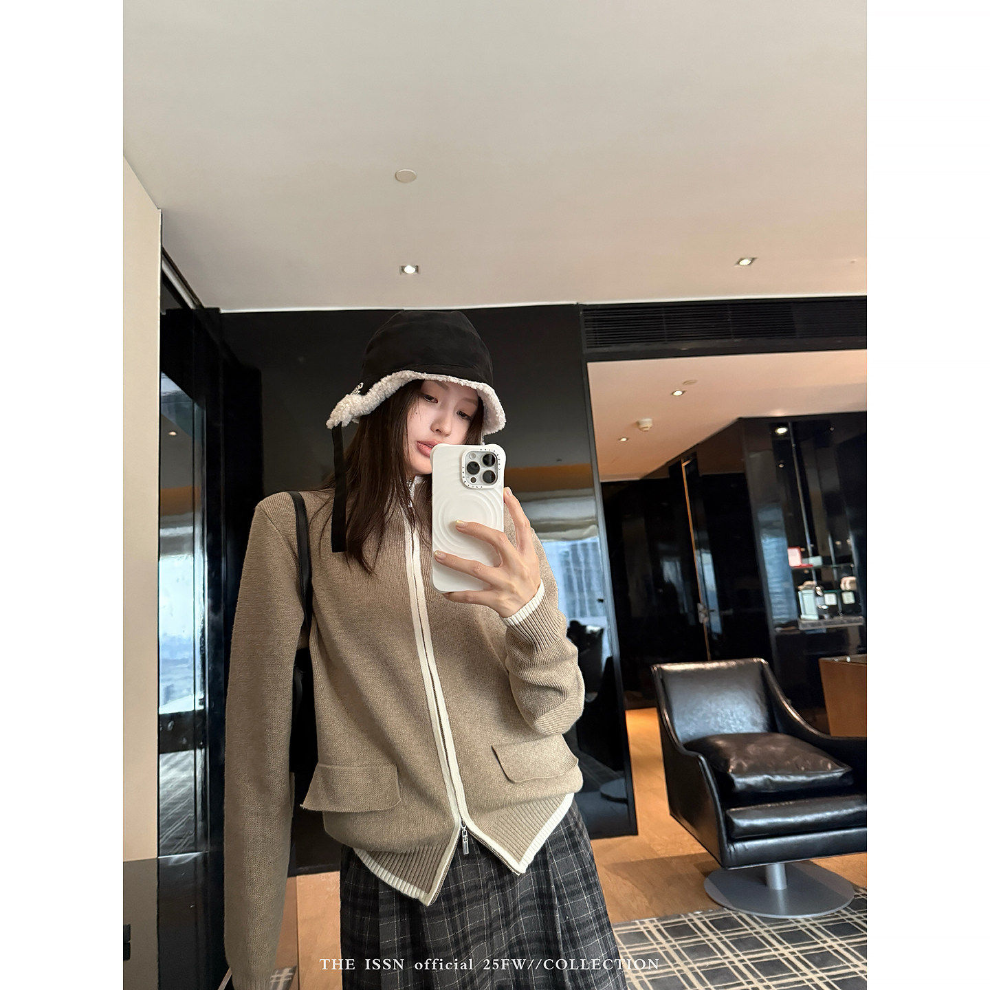 宁司 撞色立领双拉链针织衫女秋冬新款韩系宽松显瘦保暖针织外套