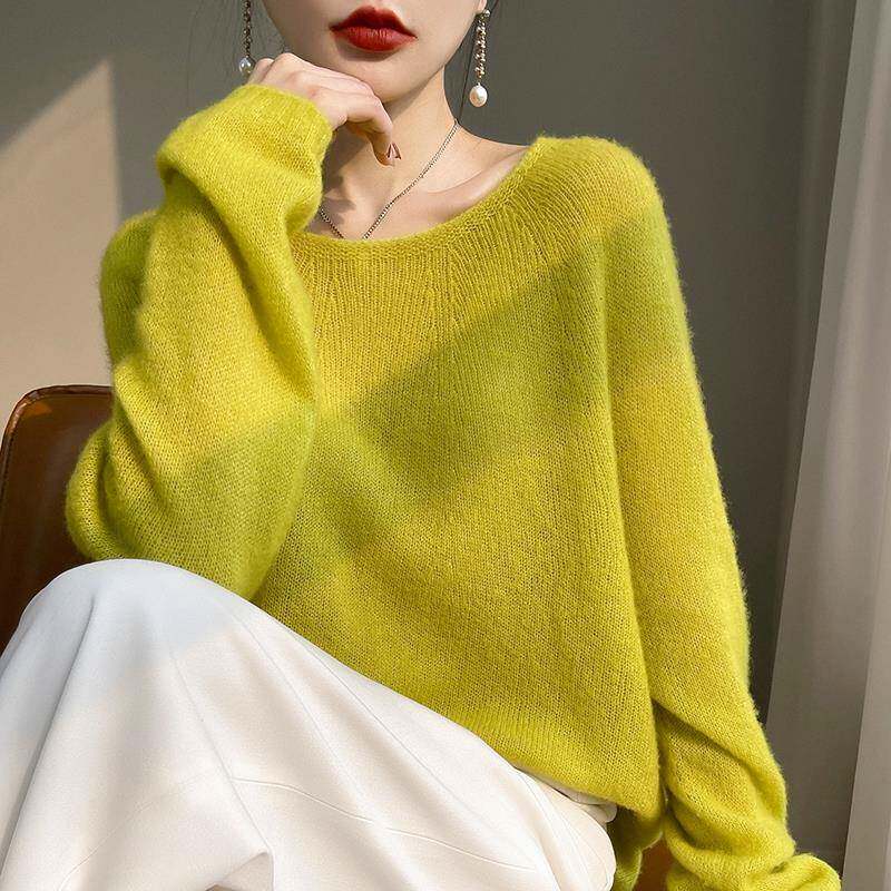 轻柔软糯~77%山羊绒23%桑蚕丝!薄款圆领宽松针织衫女无缝慵懒毛衣