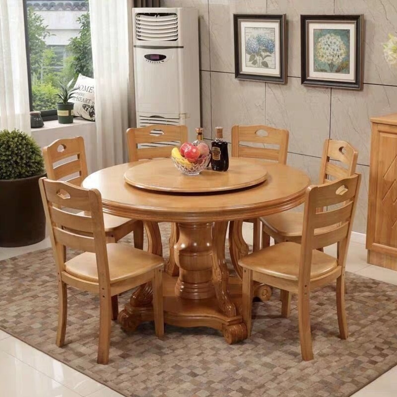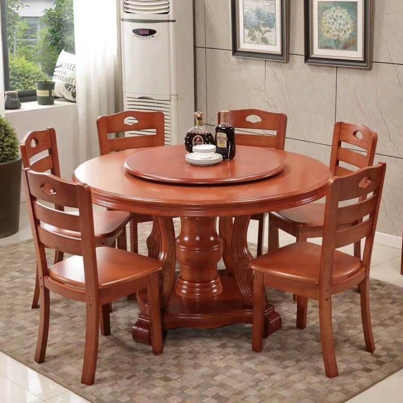 中式实木餐桌椅转盘组合家用圆形餐桌酒店饭店大圆桌电磁炉餐桌子