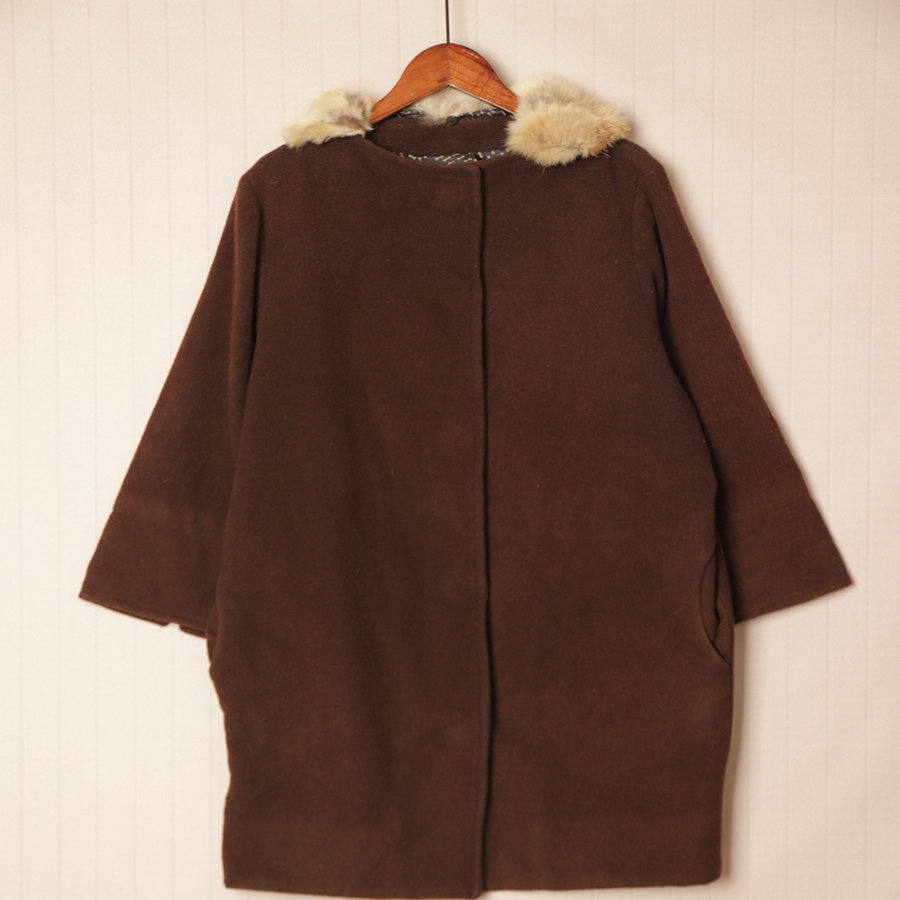秋冬Vintage复古英伦风拼接色羊毛呢子大衣 D66