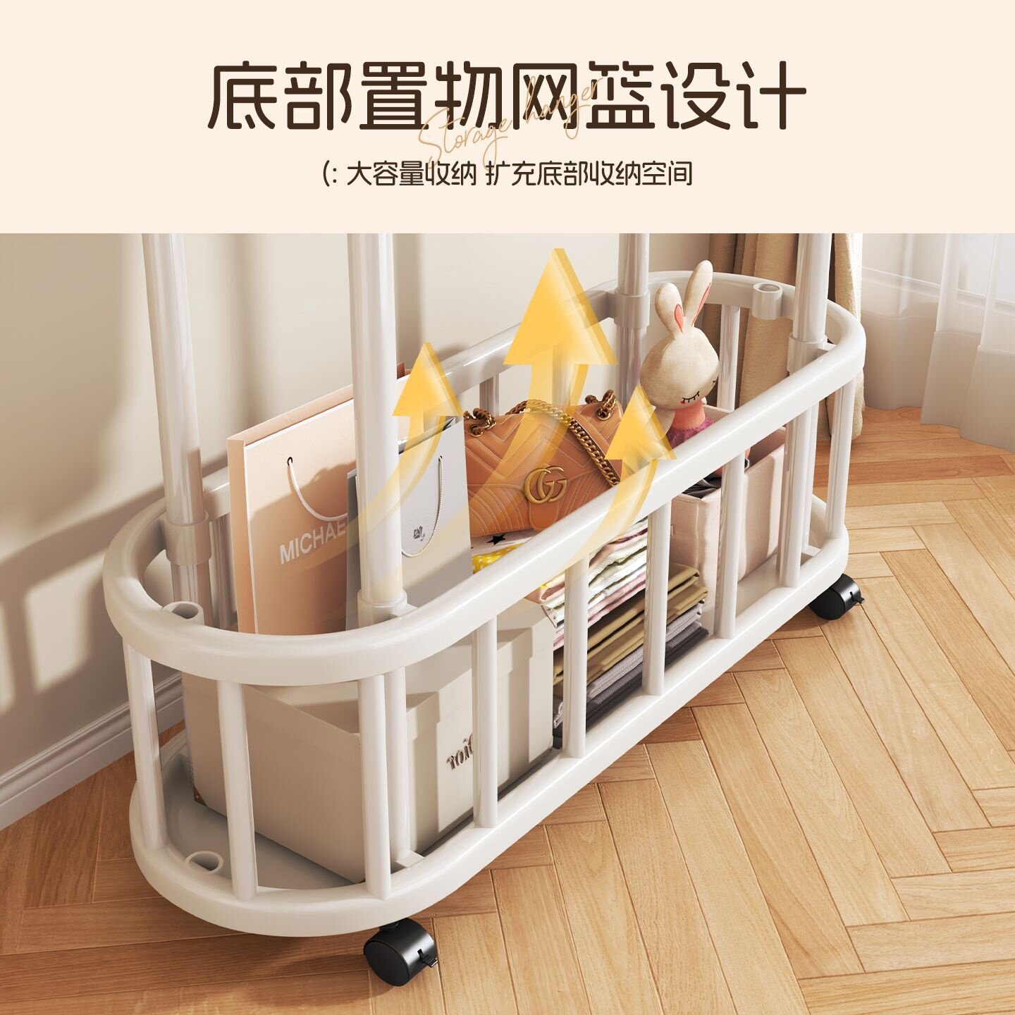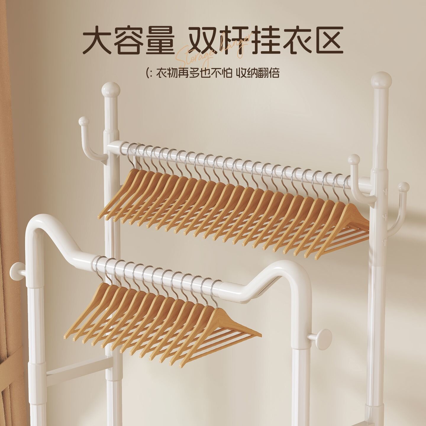简易挂衣架落地卧室家用可移动置物衣帽架阳台客厅立式挂衣服架子