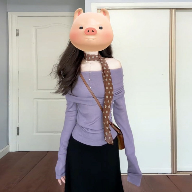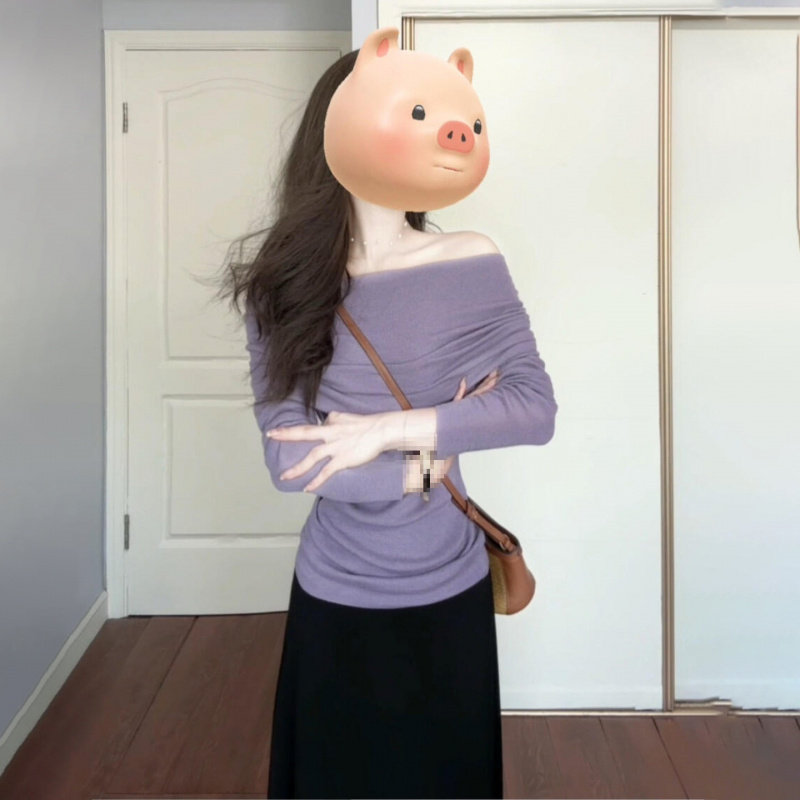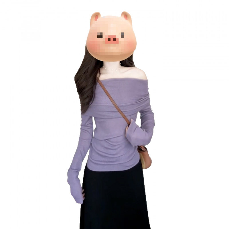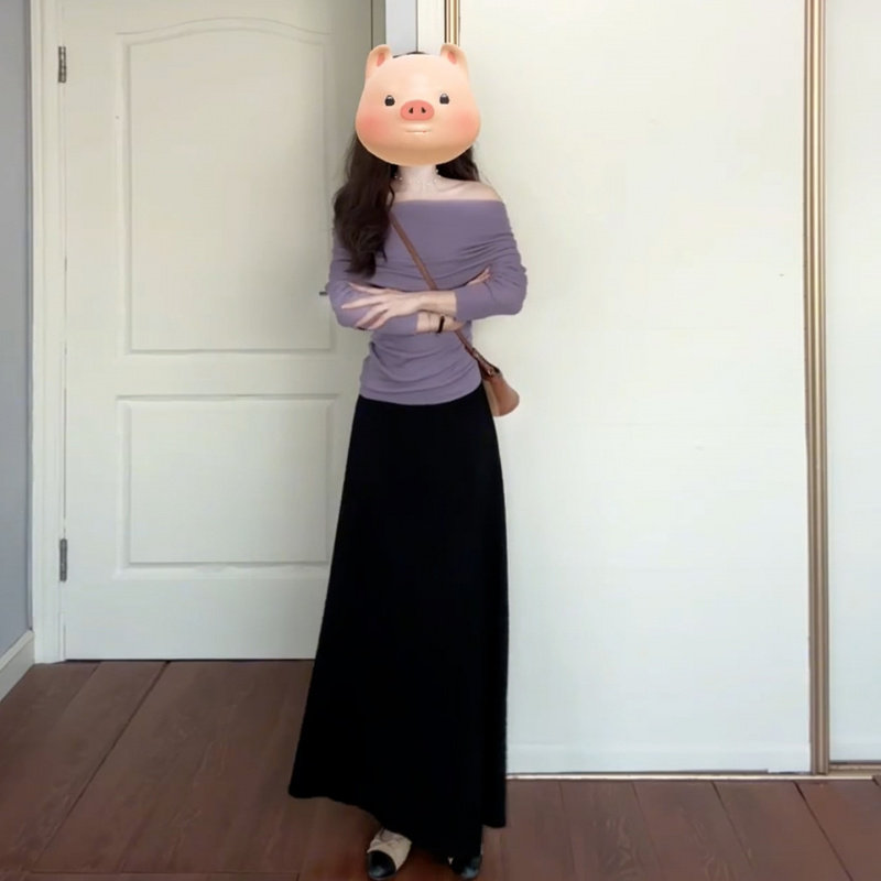 法式紫色一字肩连衣裙子女早秋季2025新款韩系小个子穿搭套装长裙