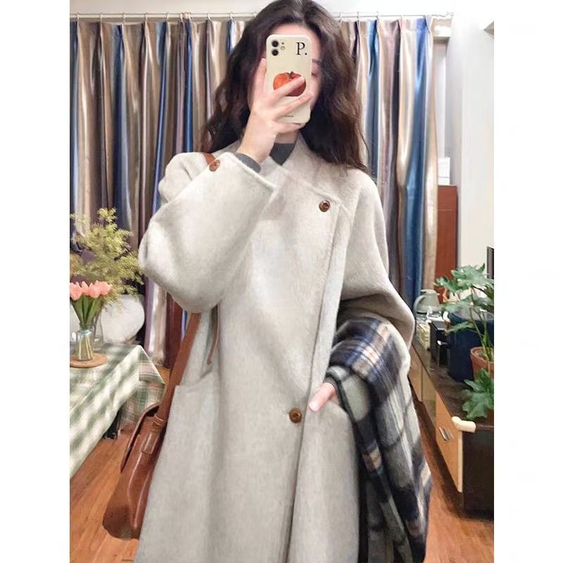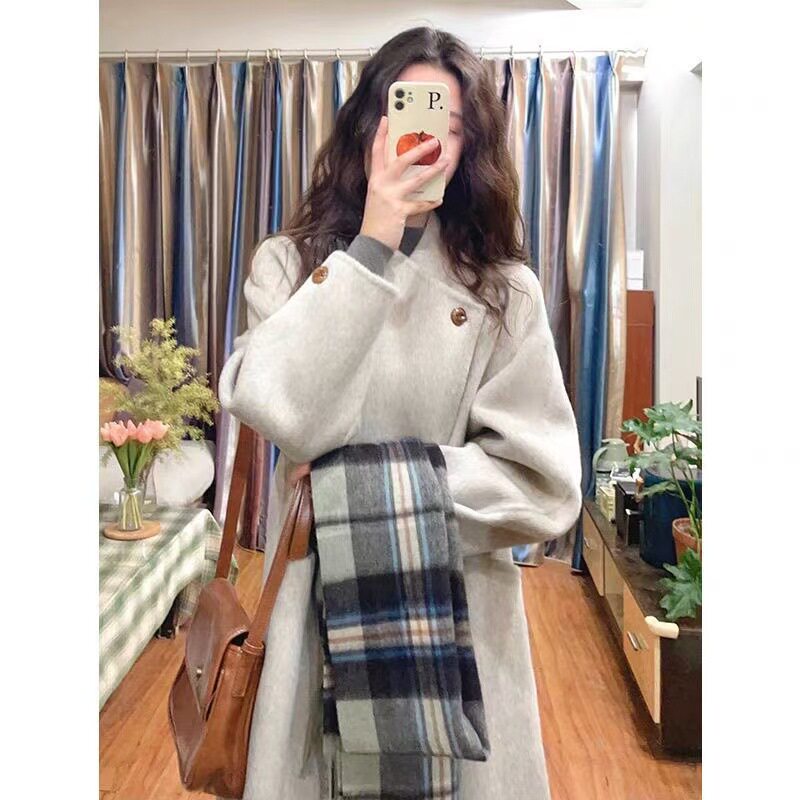 2024秋季韩版小个子呢子大衣中长款燕麦色毛呢外套女赫本风高级