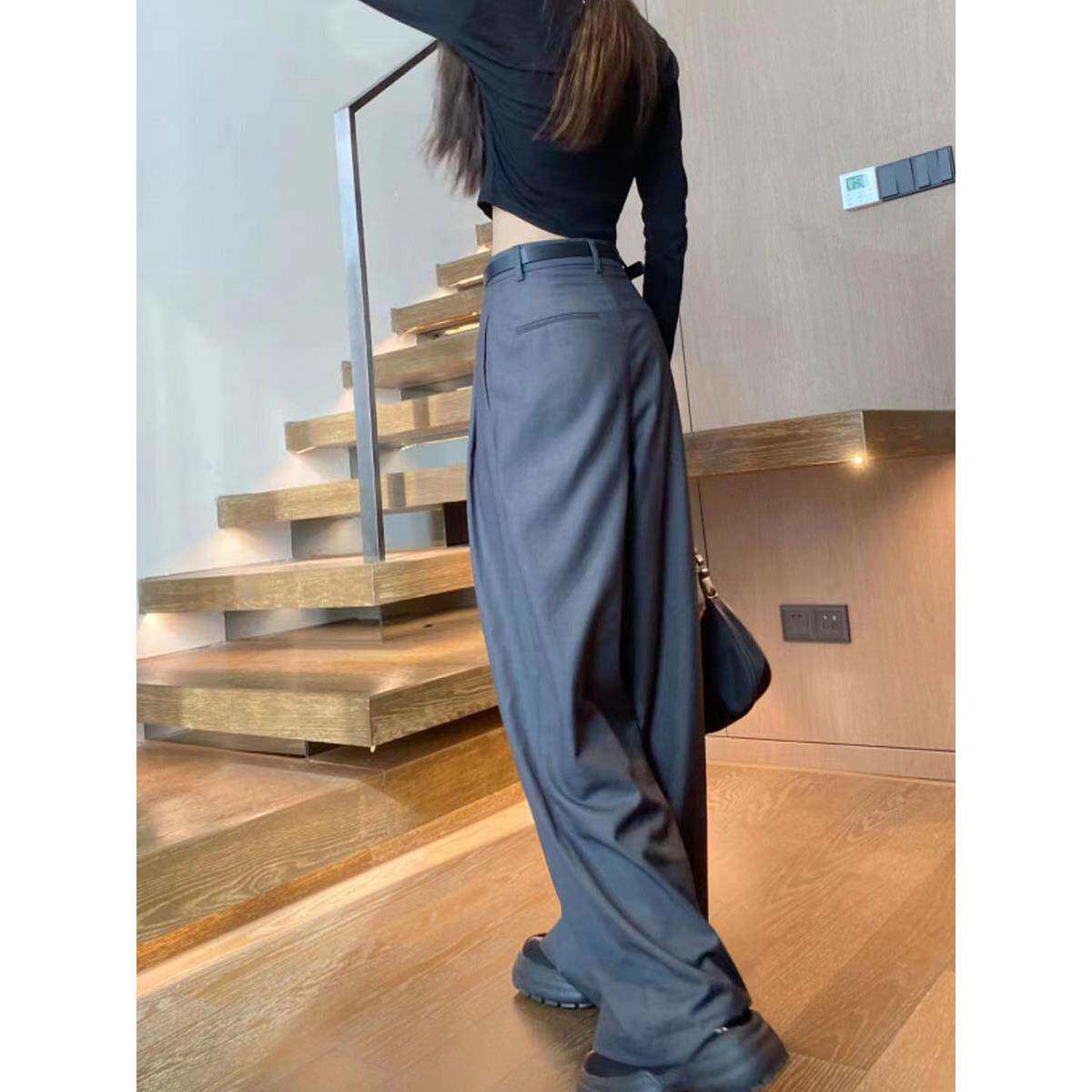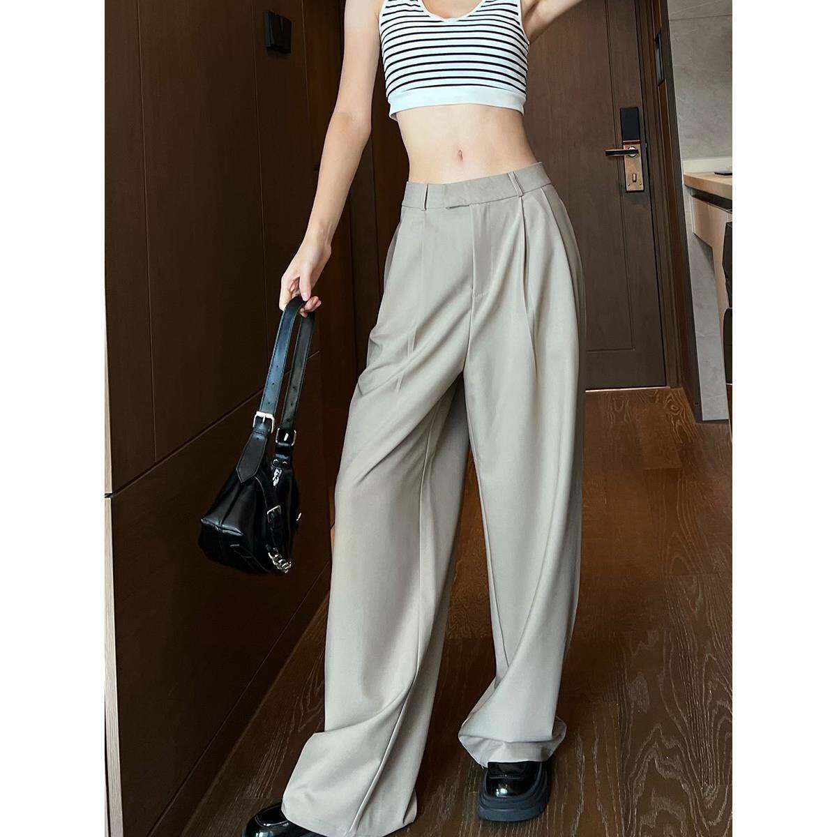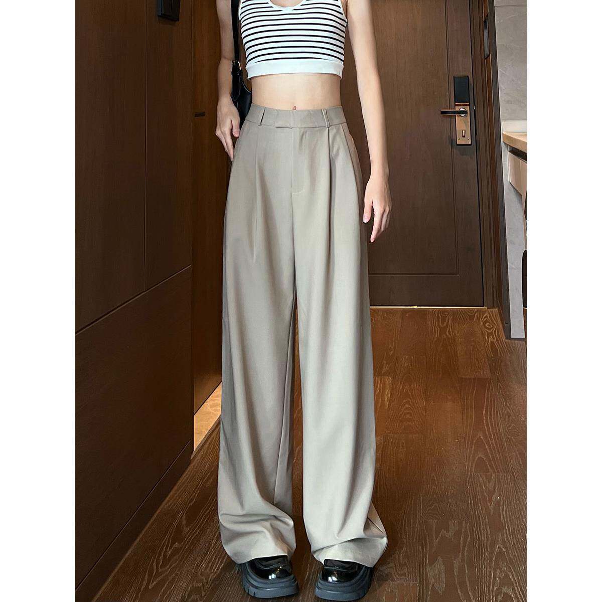 卡其色阔腿裤女高腰垂感高级感西装裤夏季薄款休闲拖地直筒裤春秋
