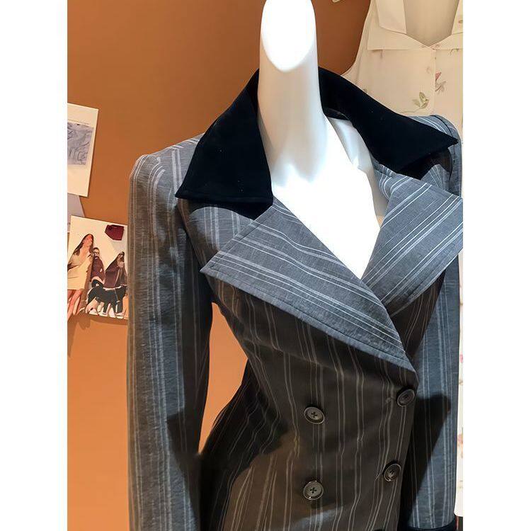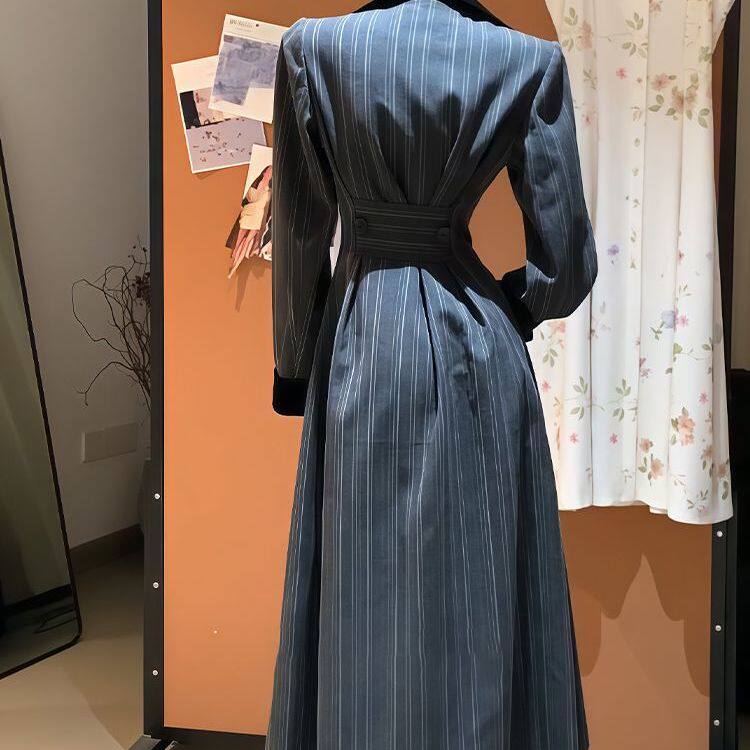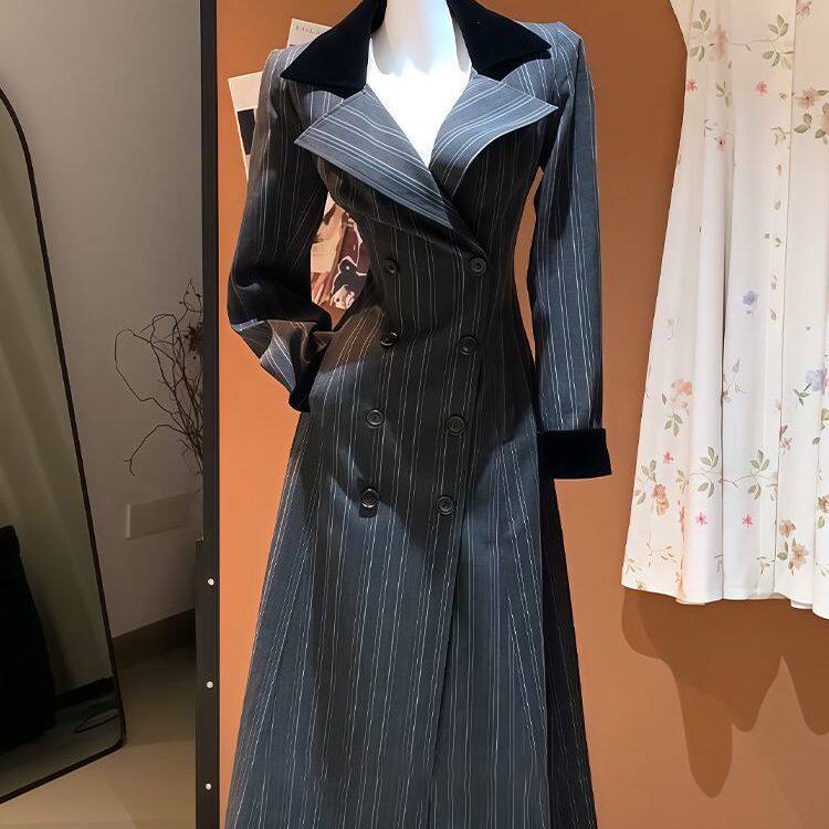 韩系超绝收腰立体条纹拼接外套风衣女秋季新款高级感气质长款大衣