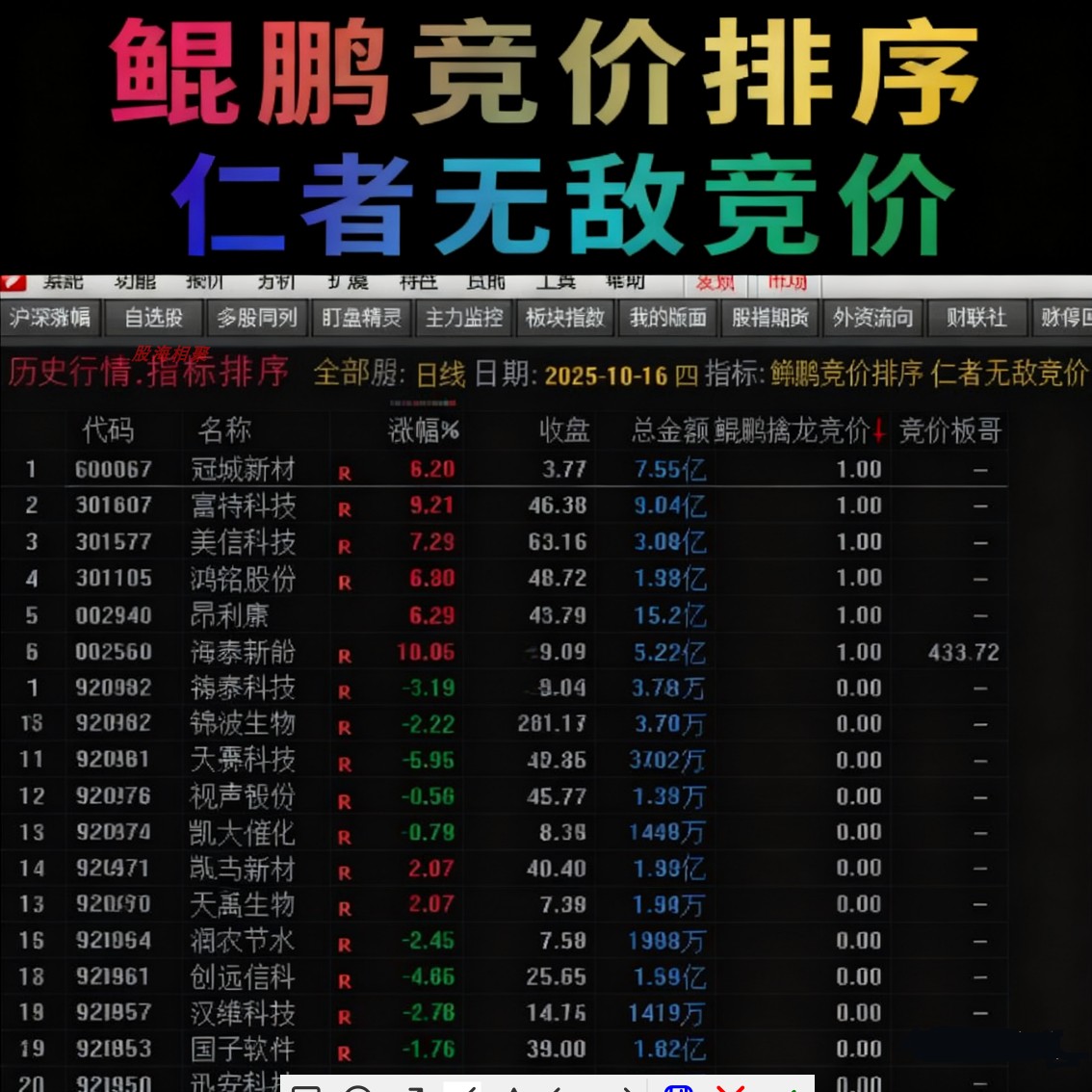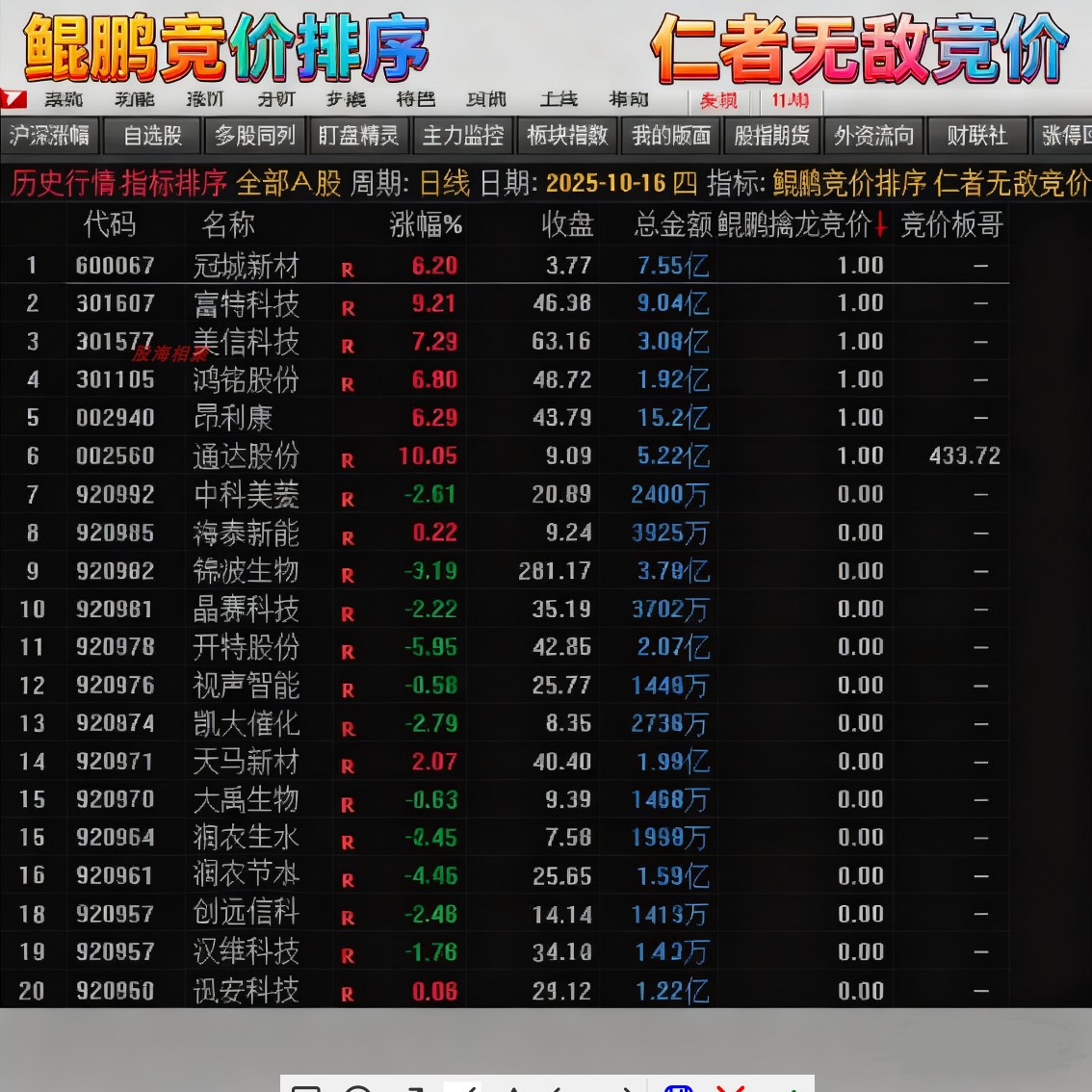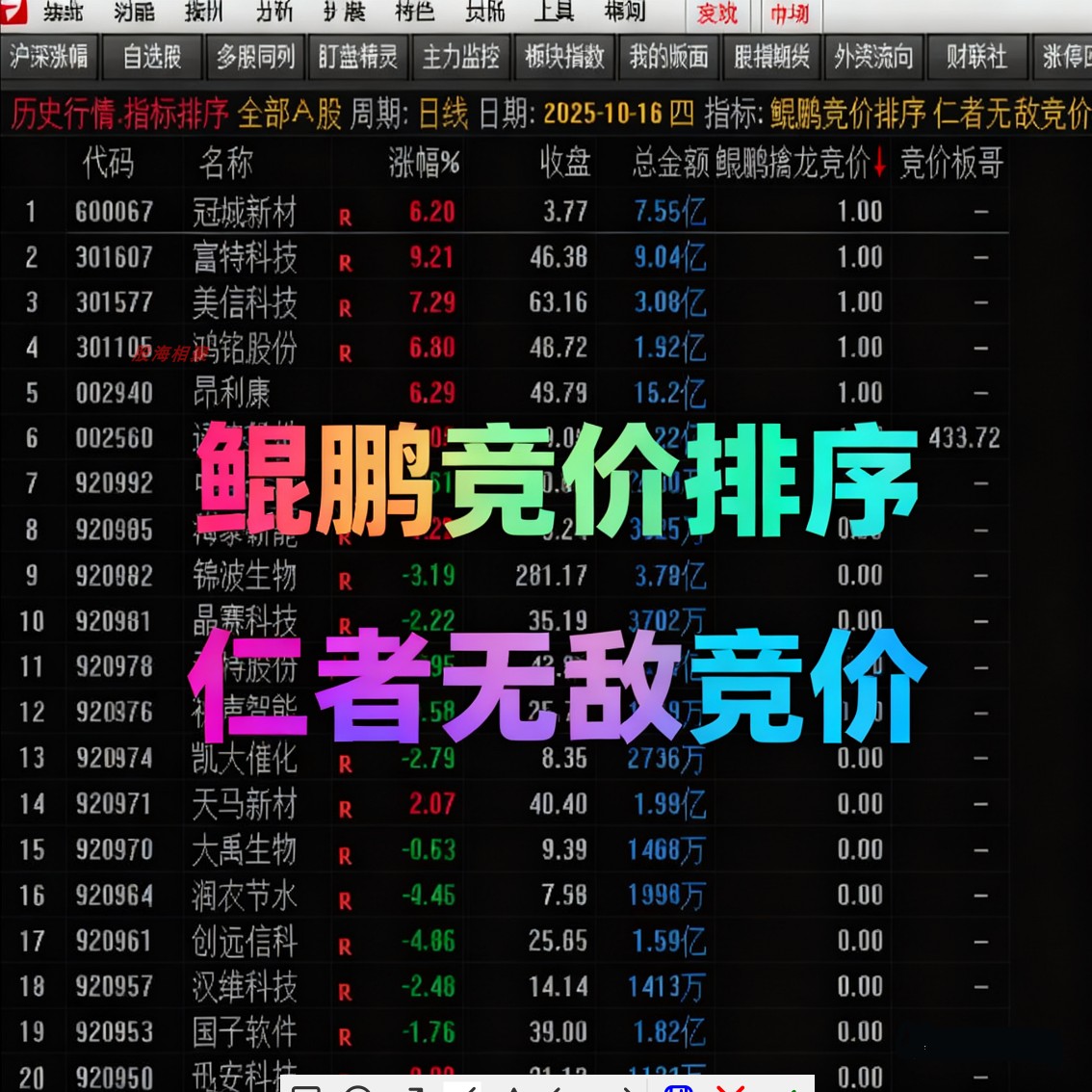 通达信竞价指标仁者无敌+鲲鹏竞价电脑排序指标排序使用