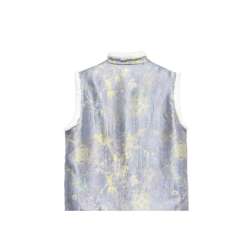 【橙庐】508800原创新中式竹叶宝相提花夹毛马甲 秋冬女气质国风