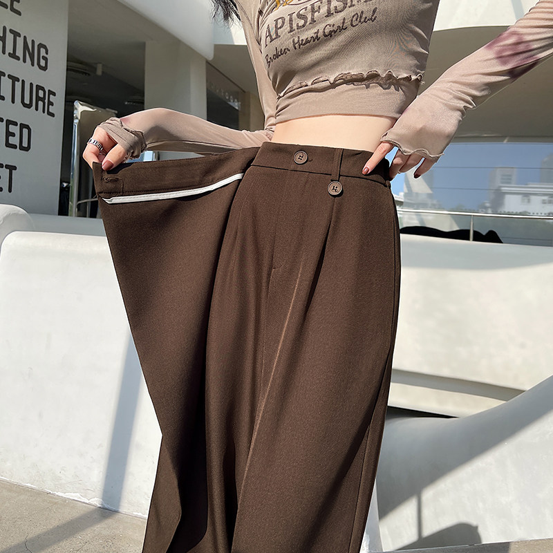 不规则拼接直筒阔腿裤女2024秋季新款炸街垂感西装裤设计感长裤子