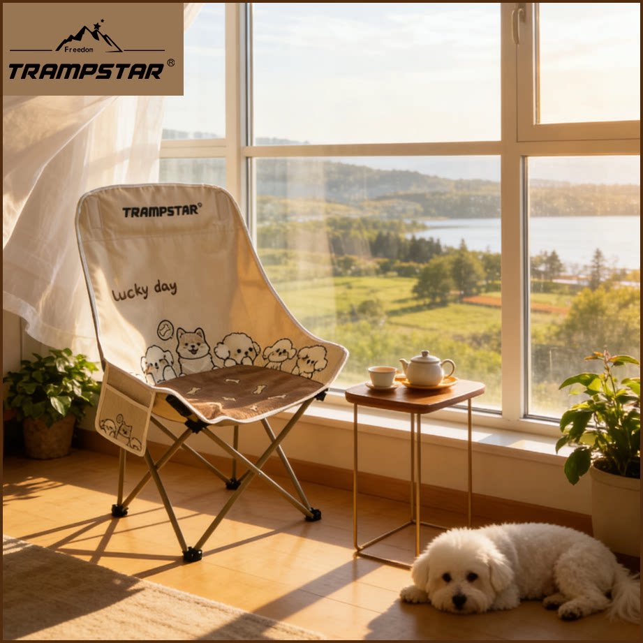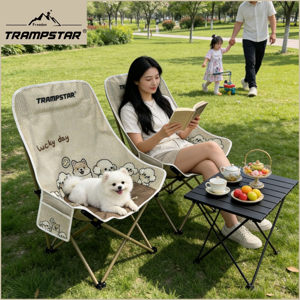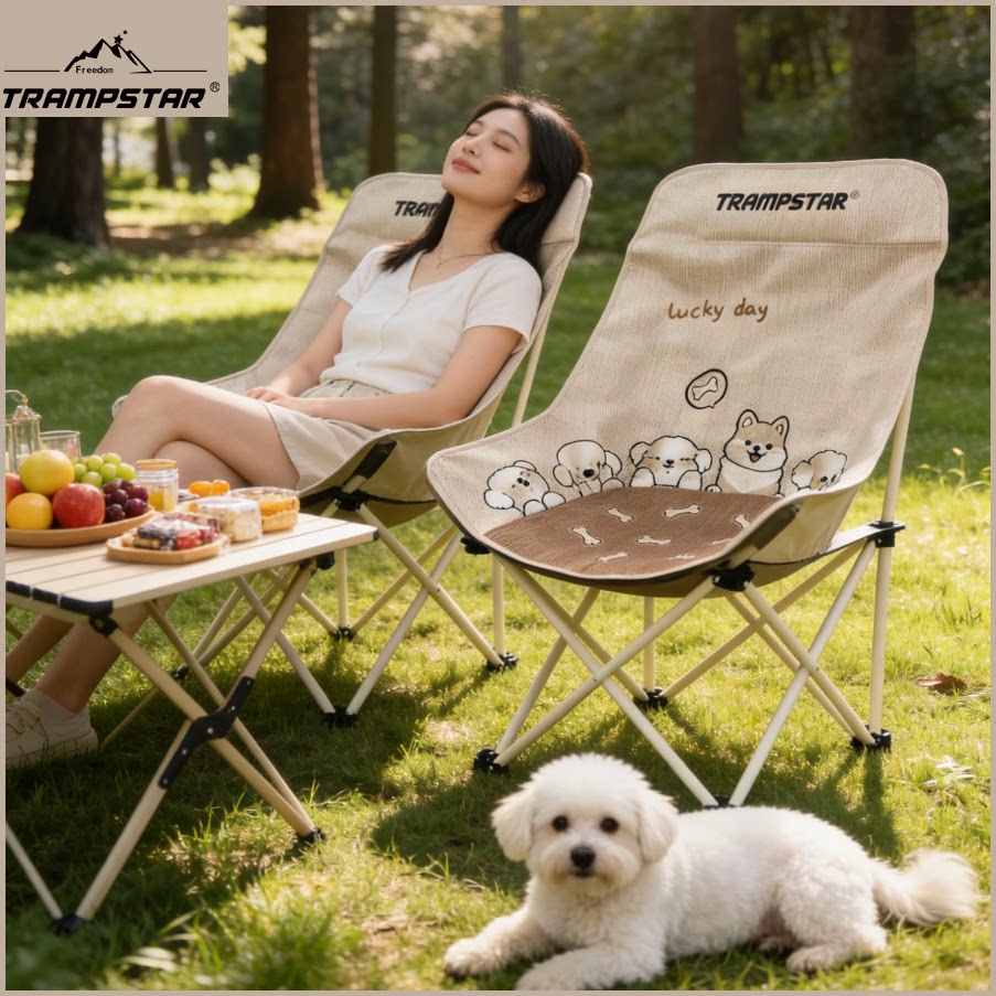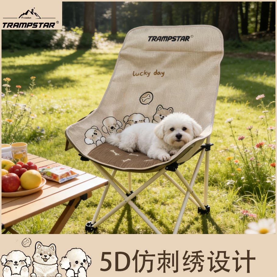 TRAMPSTAR【仿刺绣小狗】高靠背月亮椅户外折叠椅露营便携沙发椅