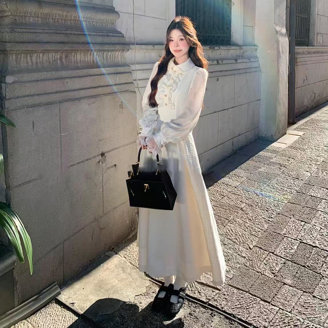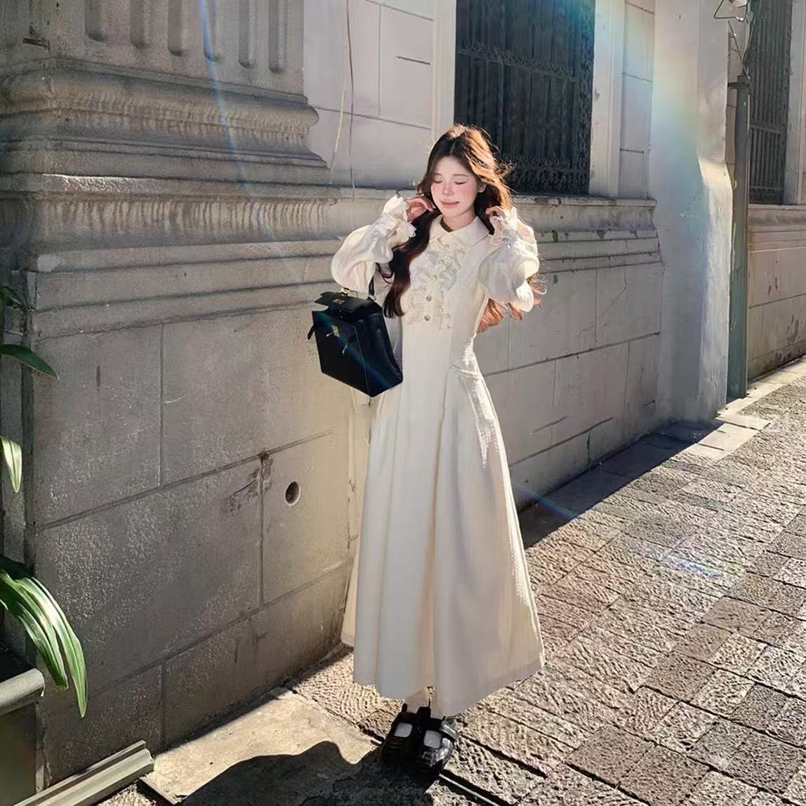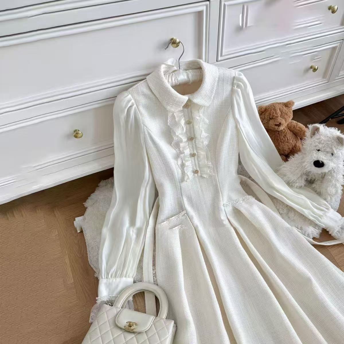 早秋法式小香风木耳边长裙娃娃领收腰显瘦气质连衣裙女