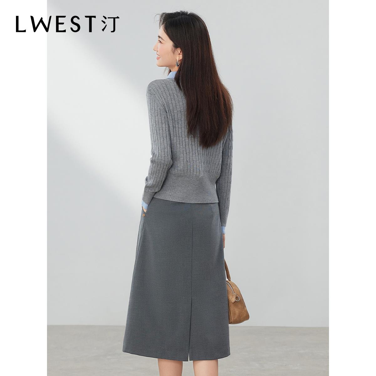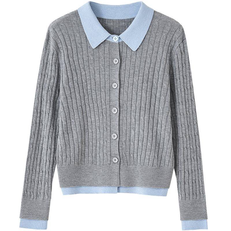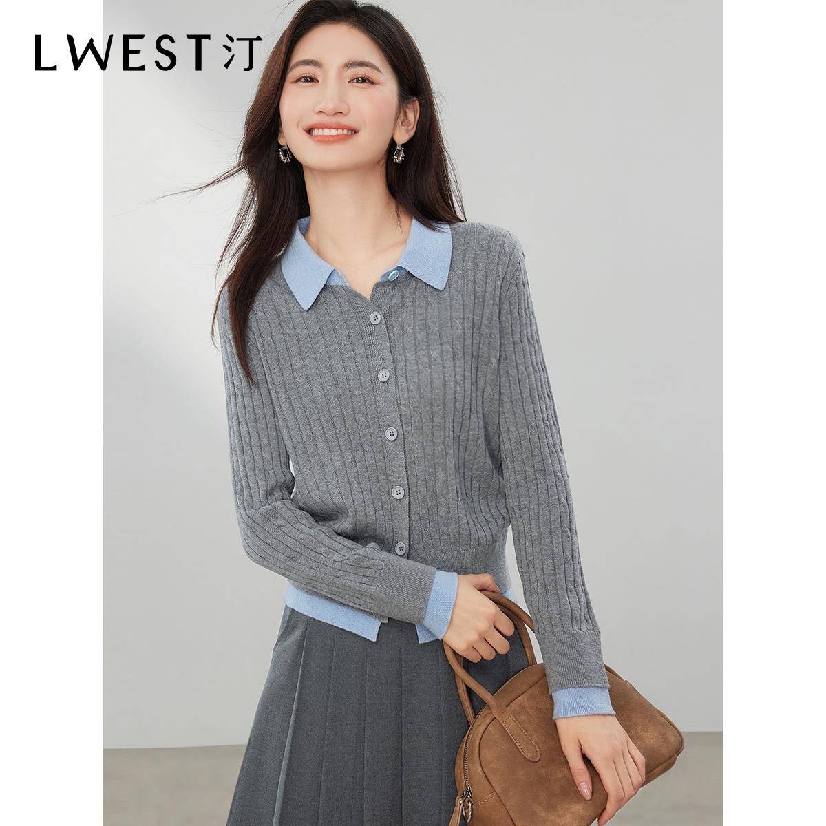 朗文斯汀坑条纹针织开衫女2025春季新款简约通勤假两件拼接上衣