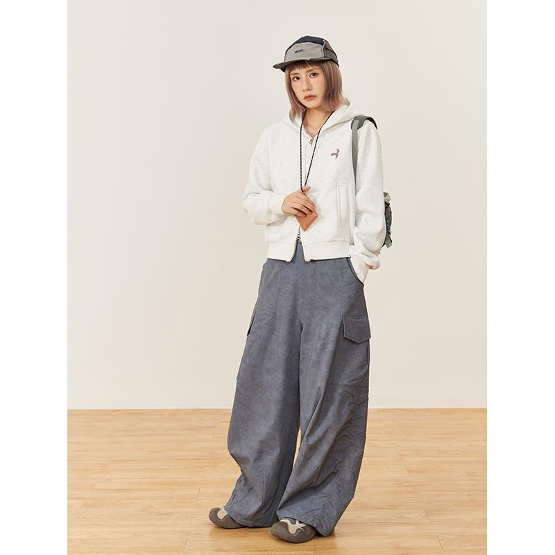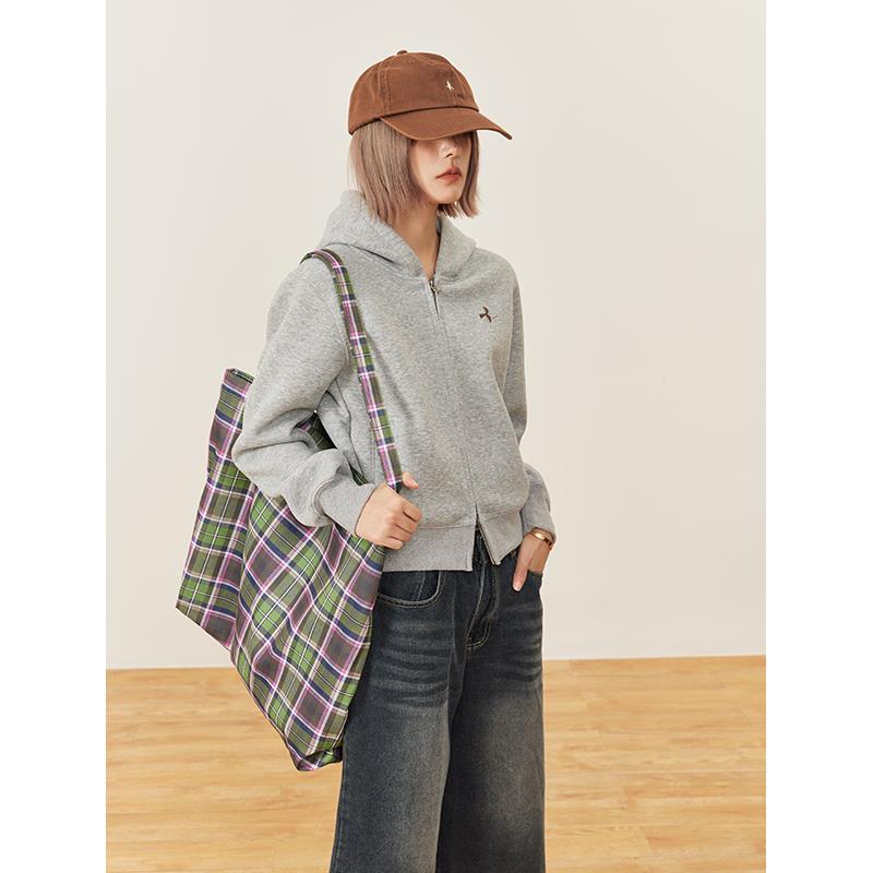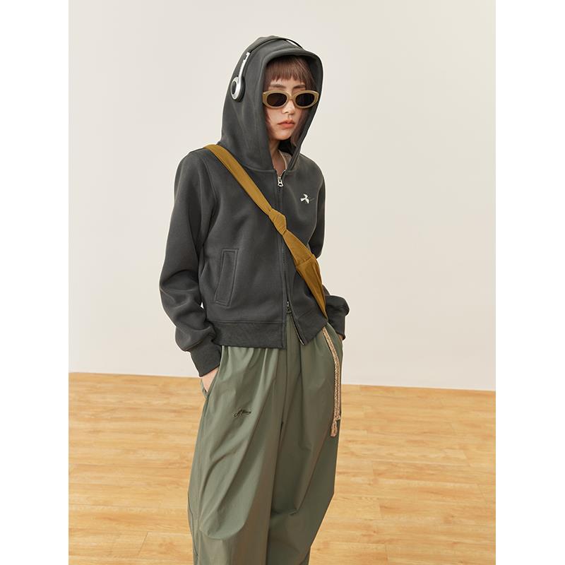 HOTHORSE火山马 春秋长袖短款印花卫衣连帽双拉链开衫外套上衣女
