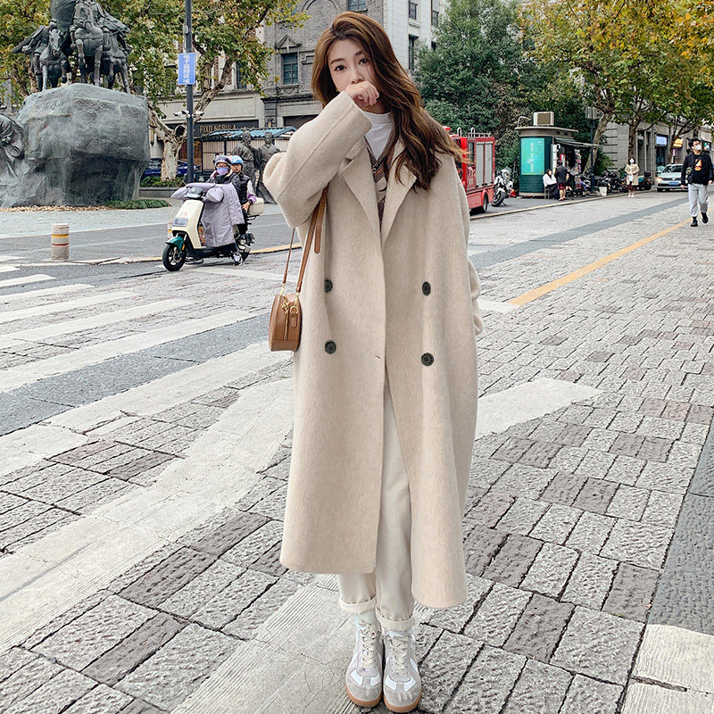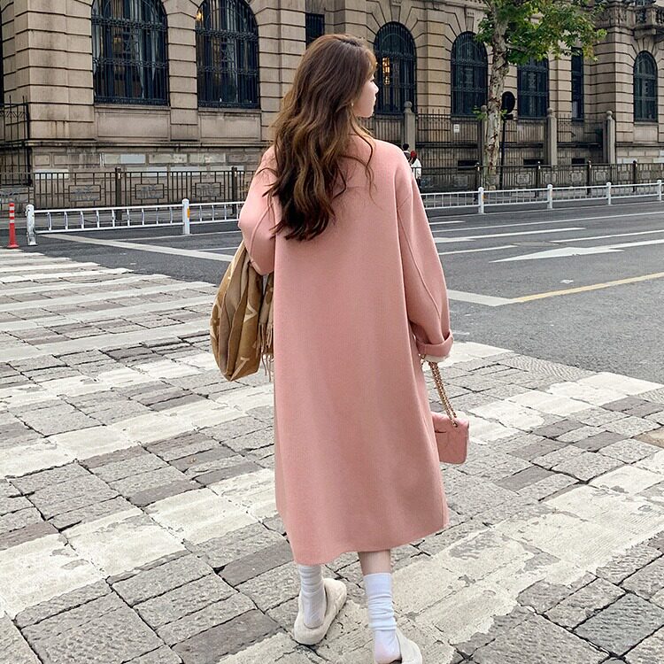 粉色时尚气质呢大衣女2025秋冬新款韩版宽松中长款赫本风毛呢外套