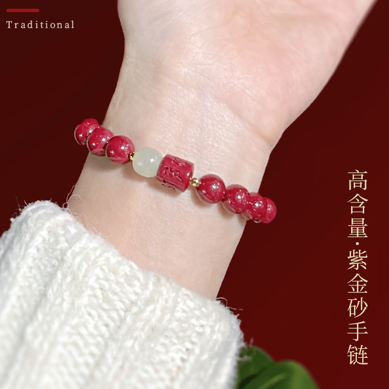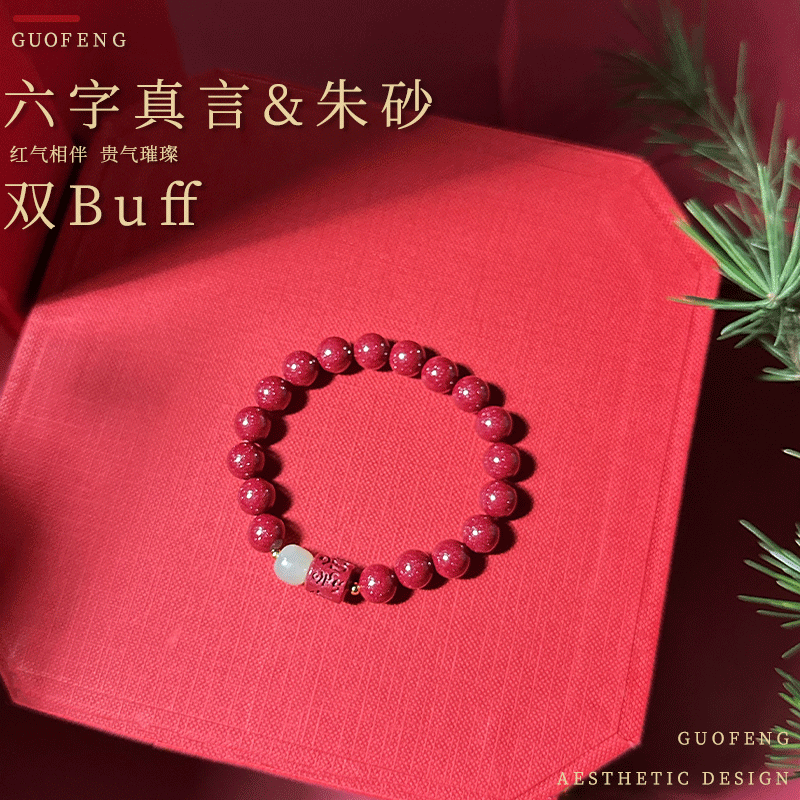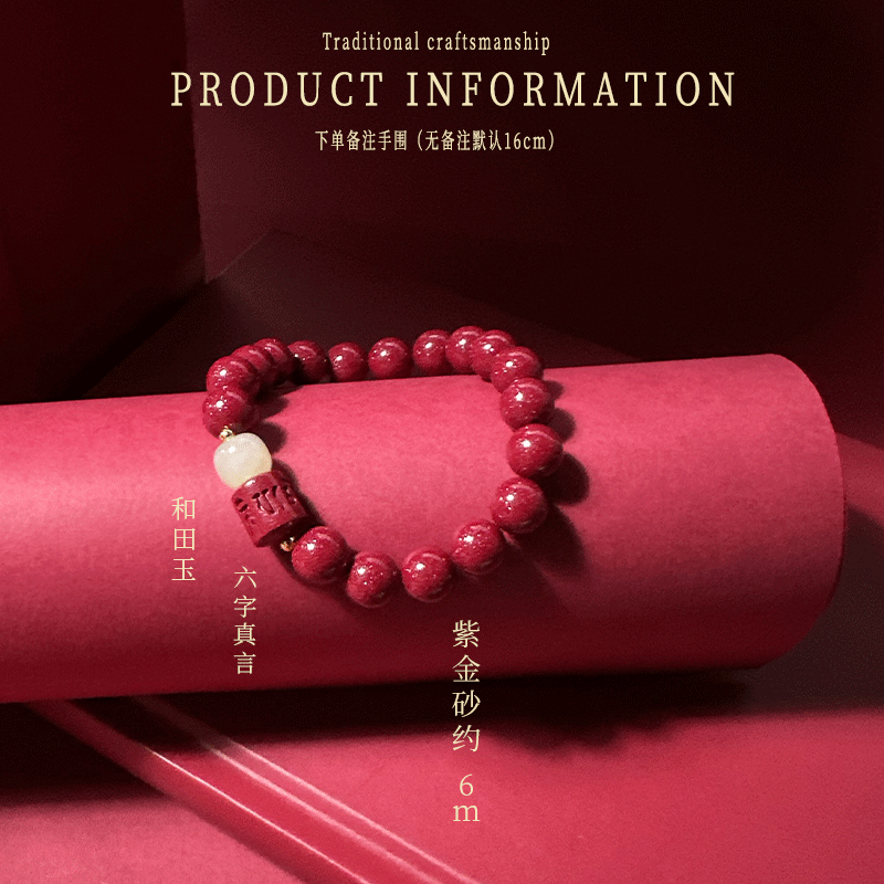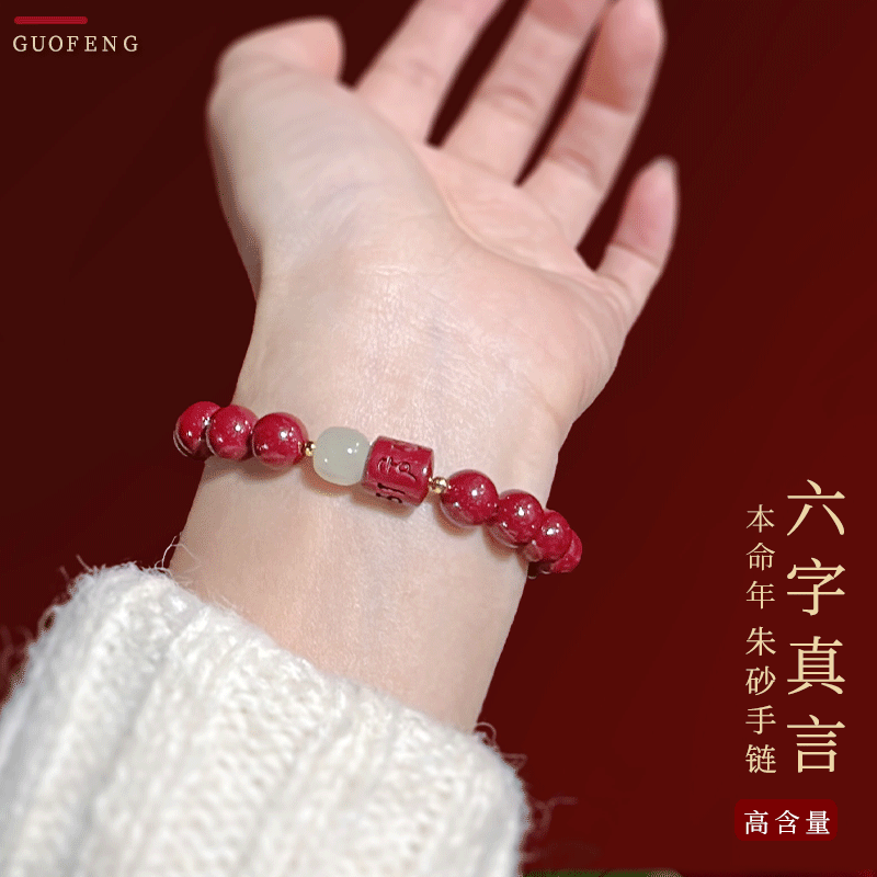 六字真言朱砂手链女款紫金砂正品手饰马年本命年礼物红色手串箴言