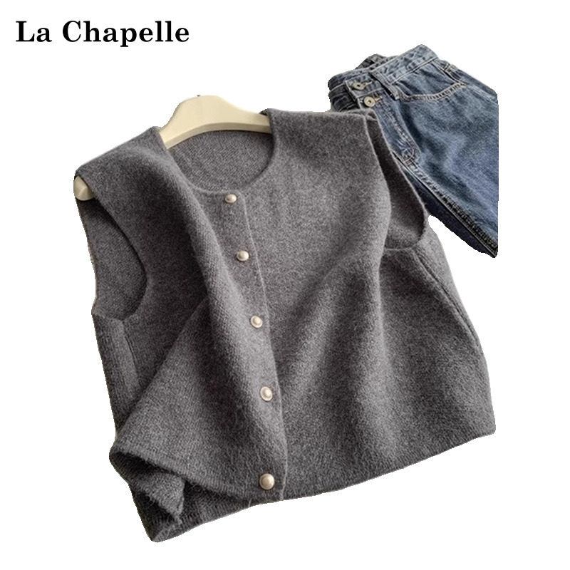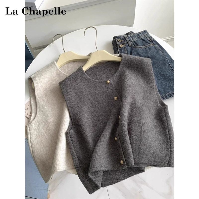 拉夏贝尔小香风针织马甲女秋季宽松软糯毛衣开衫背心坎肩无袖上衣