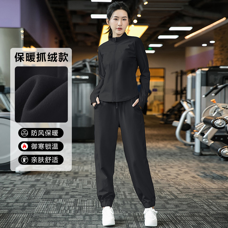 秋冬休闲时尚健身宽松立领瑜伽服中式保暖防风显瘦薄款套装女1246