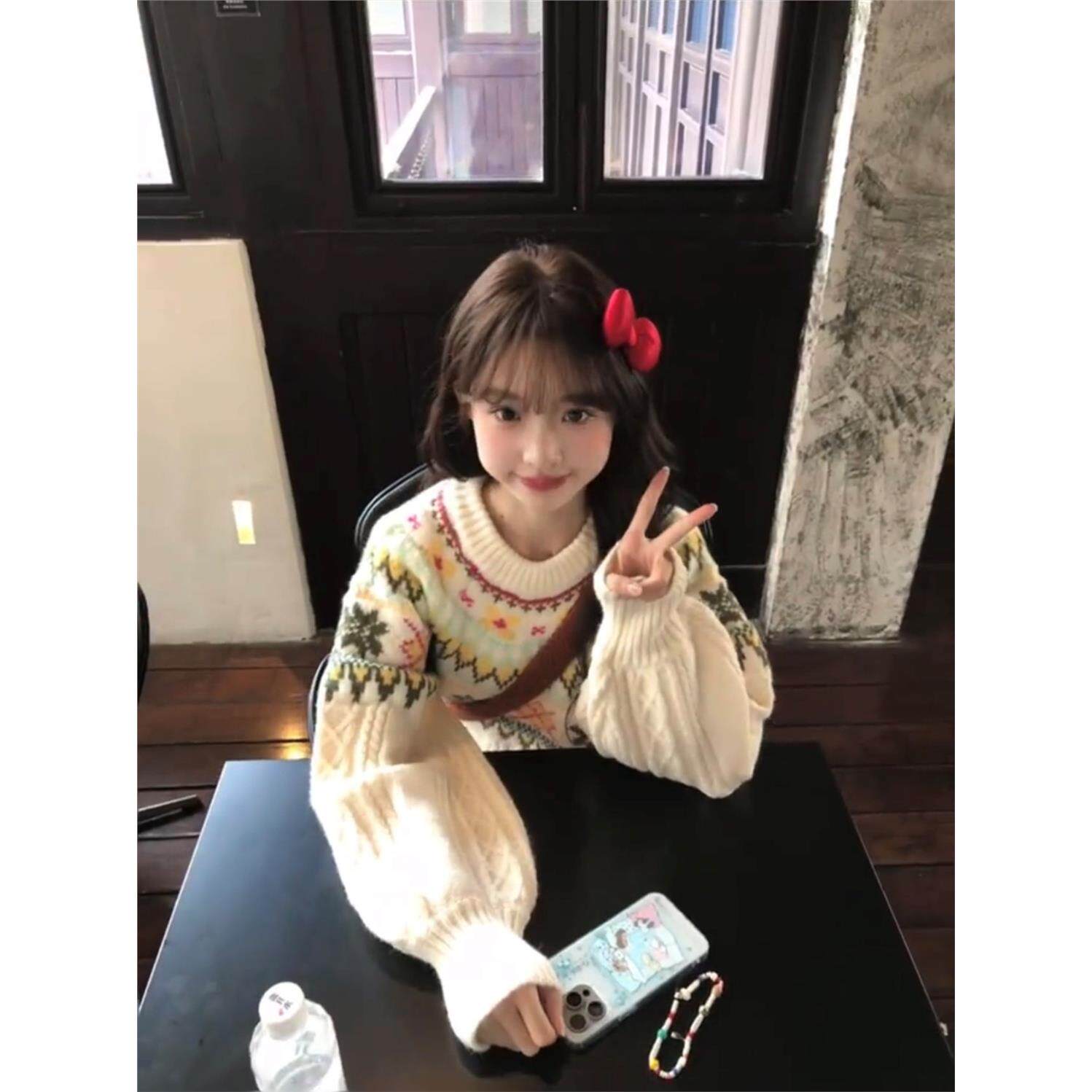 覆古费尔岛毛衣女秋冬新款慵懒风温柔圆领加厚韩系超好看上衣