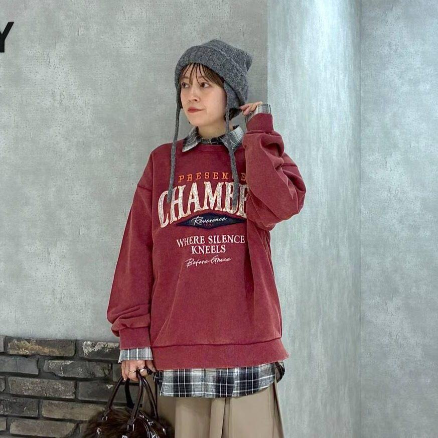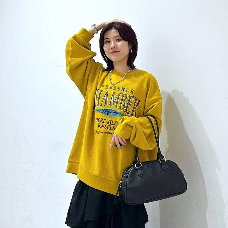秋冬日系PB龟裂字母印花刺绣纯棉水洗做旧宽松OVERSIZE卫衣男女