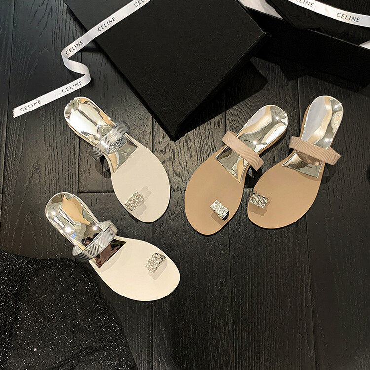 低跟拖鞋水钻坡跟套趾平底拖鞋女凉拖外穿沙滩凉拖