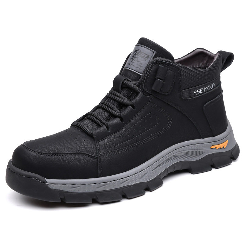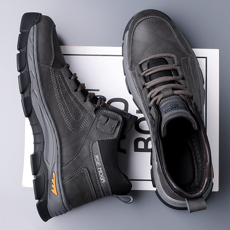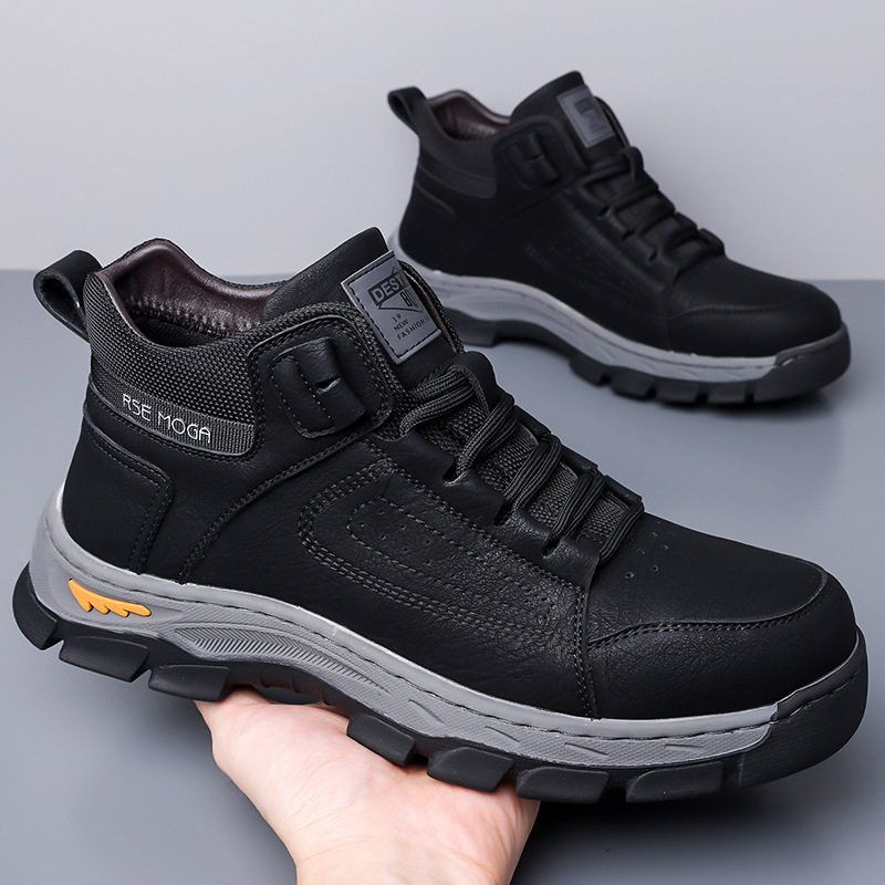 冬款奥伦男士棉鞋羊毛保暖高帮加厚防滑雪地靴皮靴男登山靴男鞋