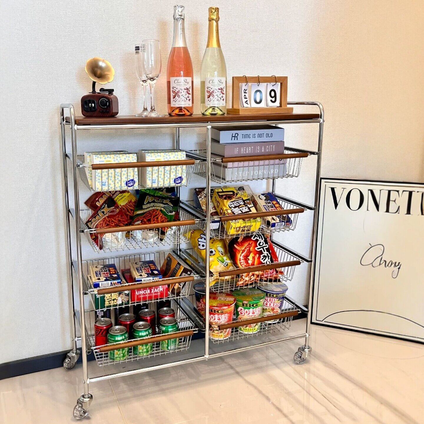 置物架中古小推车客厅移动带轮零食收纳架多层家用卧室厨房收纳架