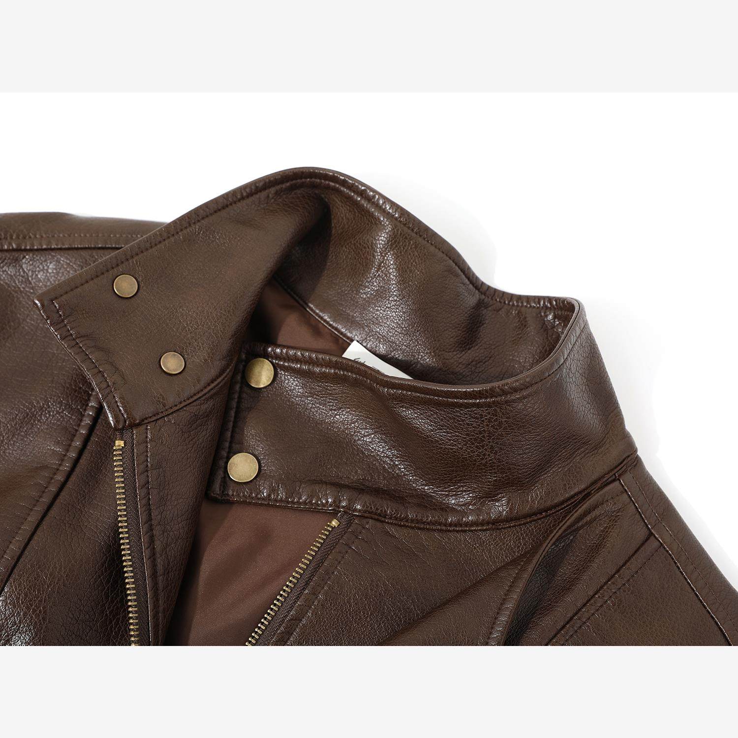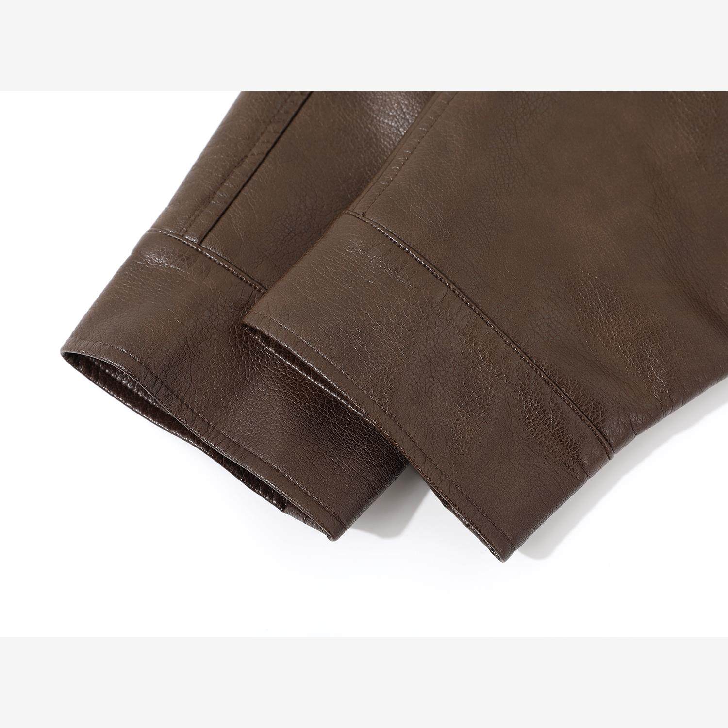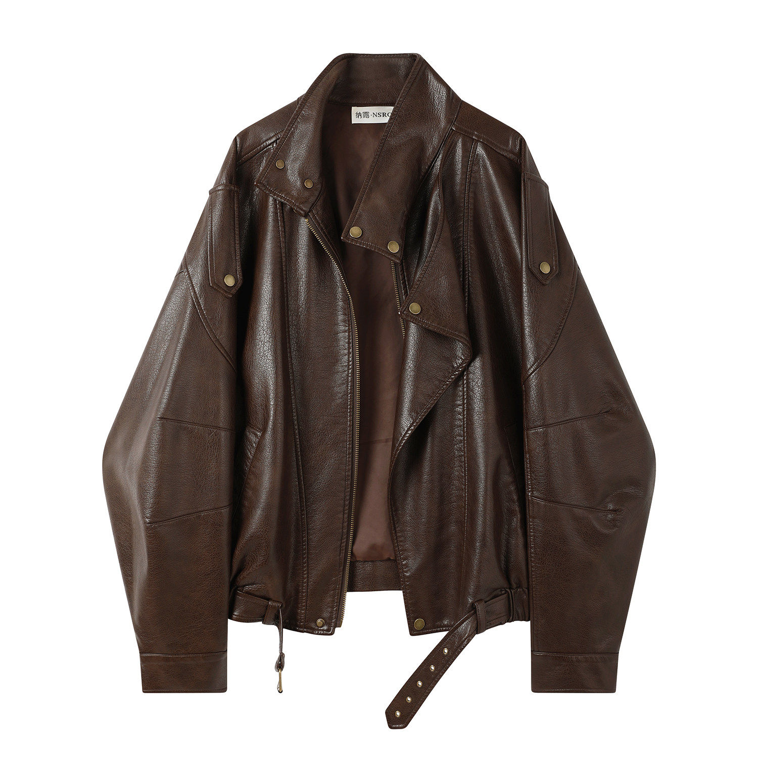 美式老钱风覆古棕色立领皮衣外套女秋季短款宽松百搭飞行机车夹克