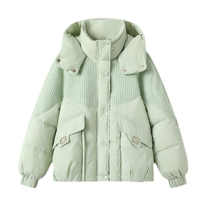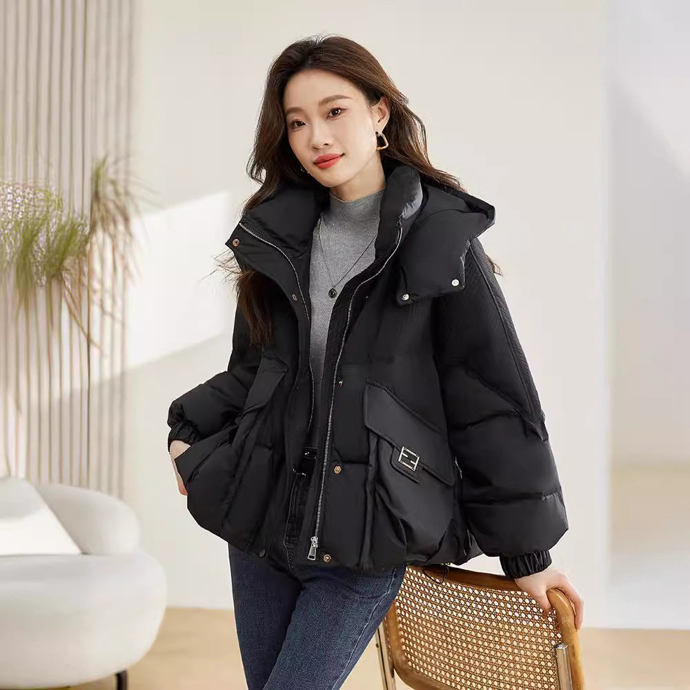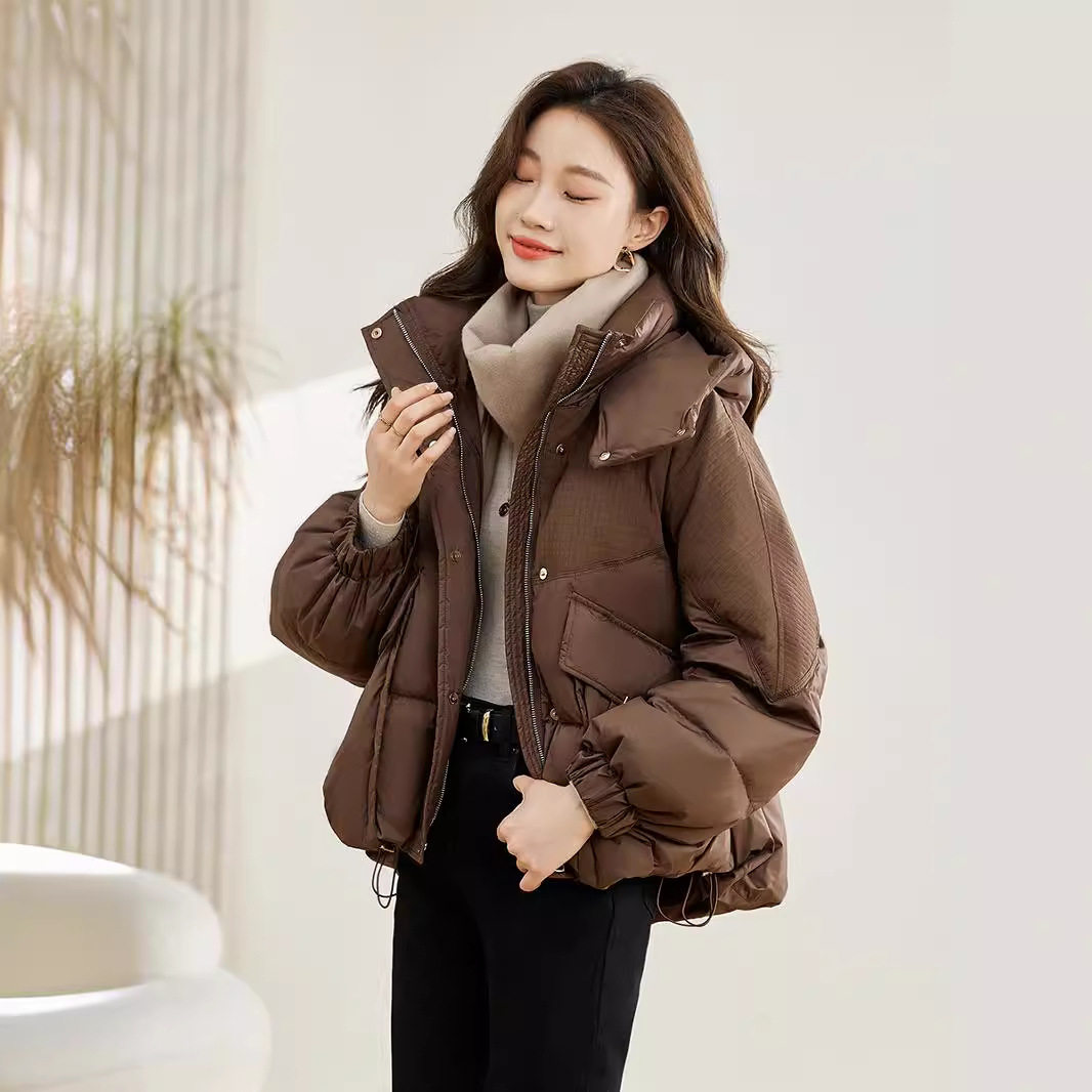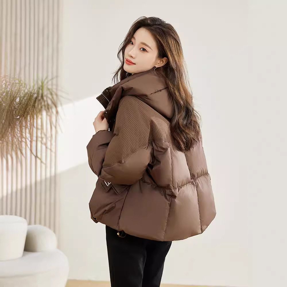 2025年冬季女款小个子短款加厚宽松棉衣棉服时尚保暖连帽外套